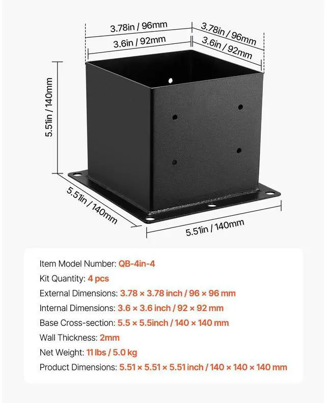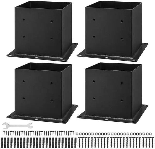 4 Pack 4x4 Post Base Brackets Wood Fence Post Anchor Inner Size 3.6 x 3.6 inch Reliable Support Dual-Purpose Screws Durable and Sturdy Material Installation Made Easy Suitable for Various Applications Effortless Installation