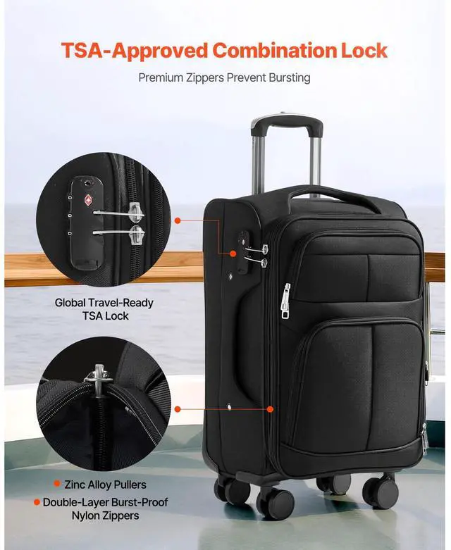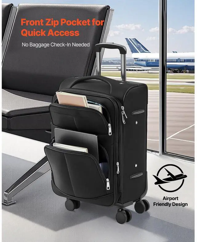 Luggage Size: 20 inch, Color: Black, Expandable: Zipper Expansion Gusset, Item