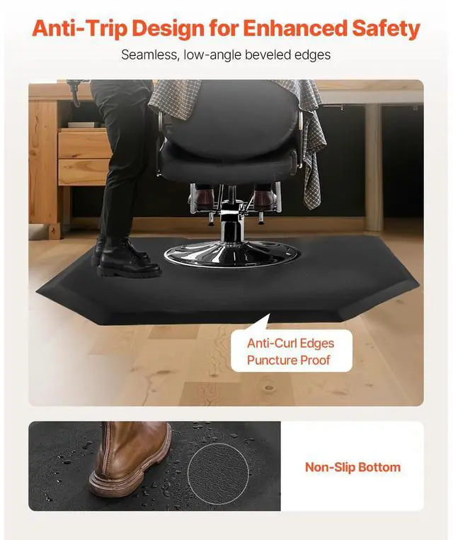 VEVOR Salon Mat for Hair Stylist 4 x 5 FT Hexagon Salon Chair Mat 1/2-inch Thick Superior Comfort Large Size Easy-to-Clean PVC Surface Ideal Choice for Professional Salons Enhanced Safety Durable for Long-Lasting Use