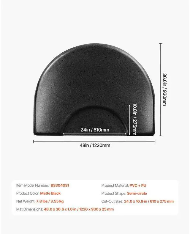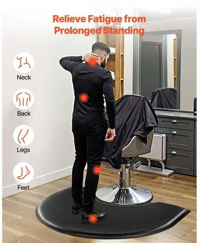 VEVOR Salon Mat for Hair Stylist 3 x 4 FT Semicircle Salon Chair Mat 1-inch Thick Superior Comfort Large Size Easy-to-Clean PVC Surface Ideal Choice for Professional Salons Enhanced Safety Durable for Long-Lasting Use