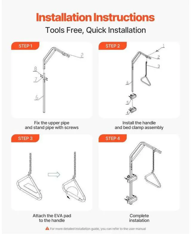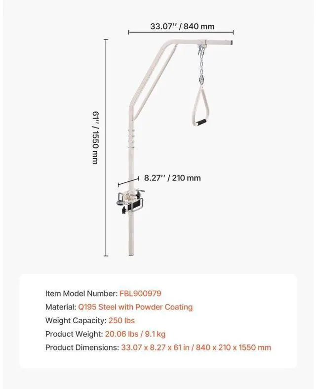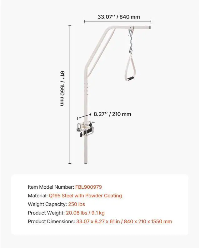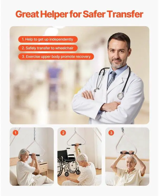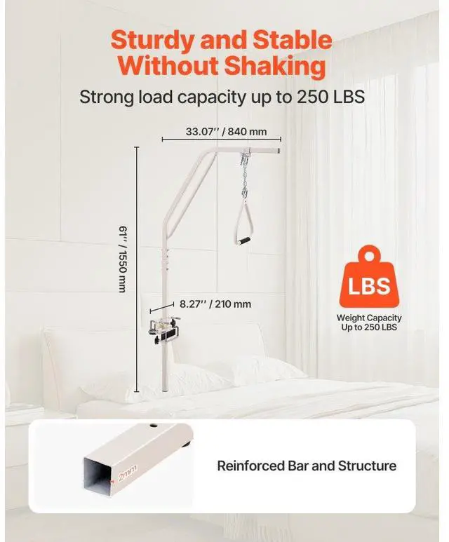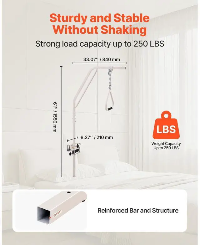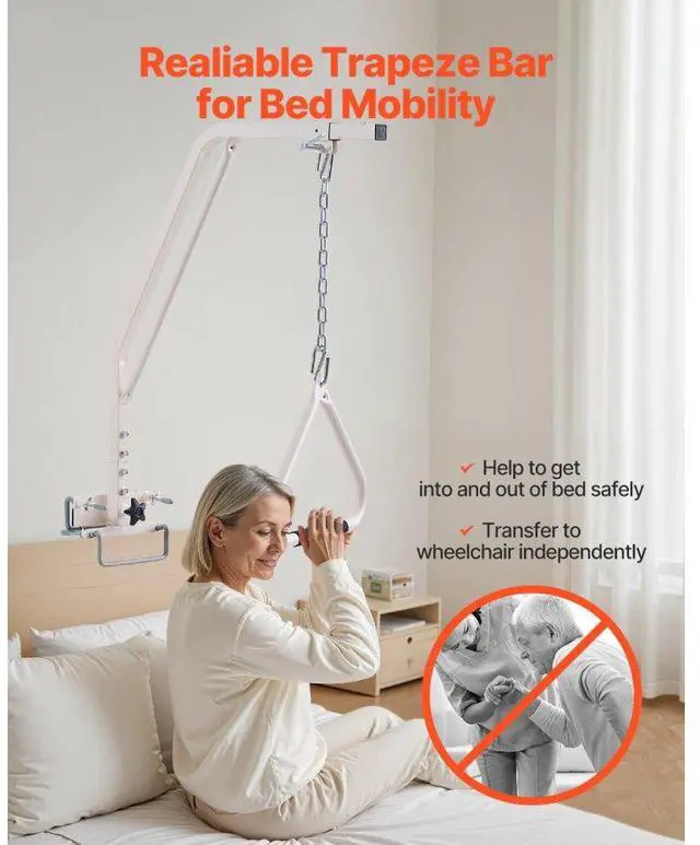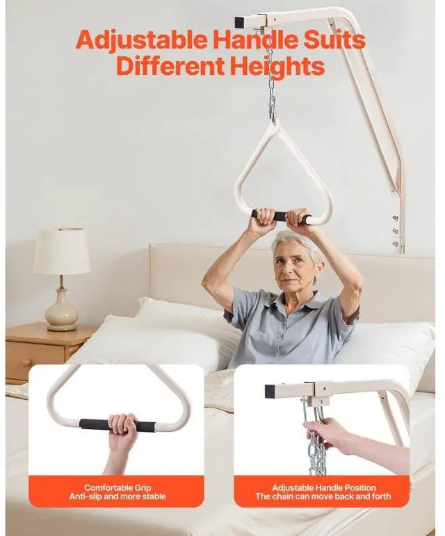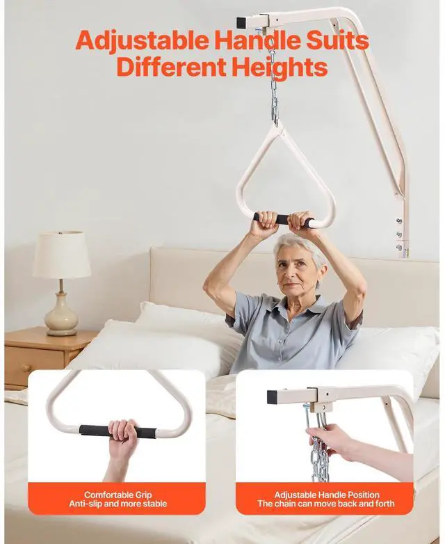 VEVOR Trapeze Bar for Bed Mobility 250LBS Bed Trapeze with Clamps & Metal Chain Help You Move More Independently Quick Installation Suitable for Various Bed Types Versatile Applications Adjustable Handle Height Strong and Stable