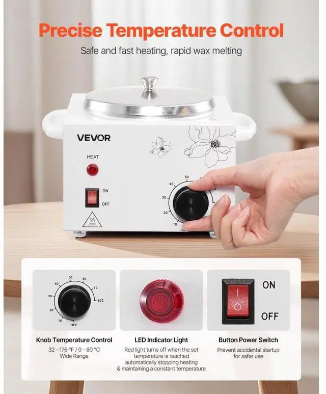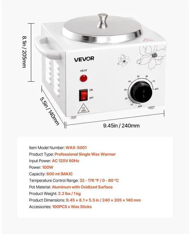 VEVOR Single Wax Warmer 600ML Professional Waxing Heater Pot for Hair Removal Even Heating High-Quality Aluminum Pot 4 Steps to Quickly Melt Wax Suitable for the Whole Body Large Capacity Adjustable