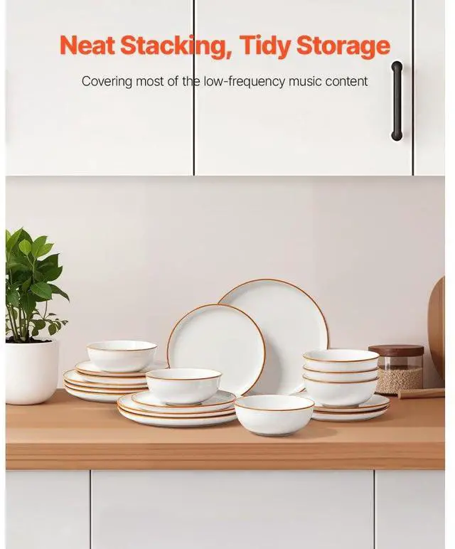 18 PCS Dinnerware Set Ceramic Plates and Bowls Sets Service for 6 White Smooth Edges Smooth Bottom Minimalist Colors Reliable for Appliance Use Fine Lines and Craftsmanship Aesthetic and