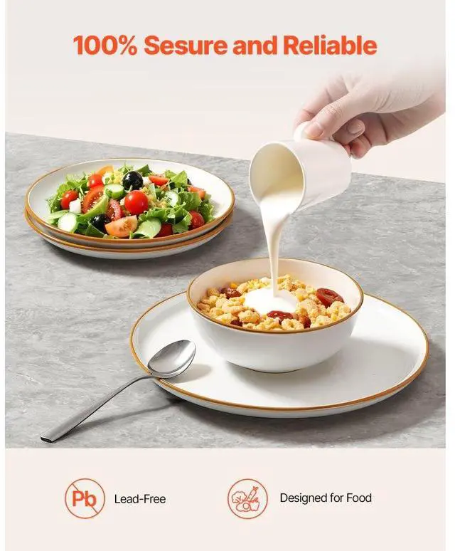 12 PCS Dinnerware Set Ceramic Plates and Bowls Sets Service for 4 White Smooth Edges Smooth Bottom Minimalist Colors Reliable for Appliance Use Fine Lines and Craftsmanship Aesthetic and