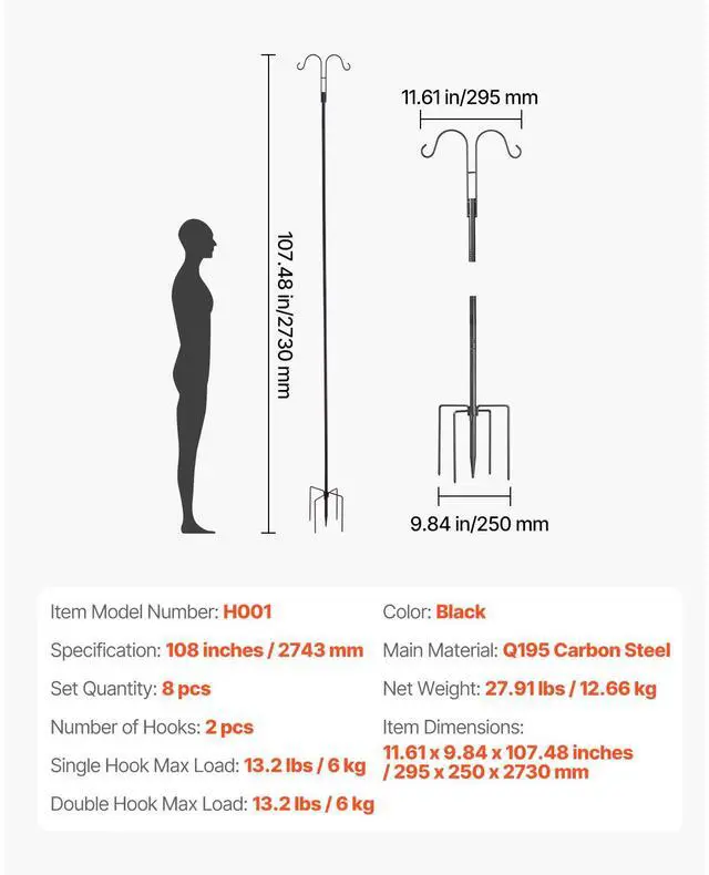 Double Hook Max Load: 13.2 lbs / 6 kg