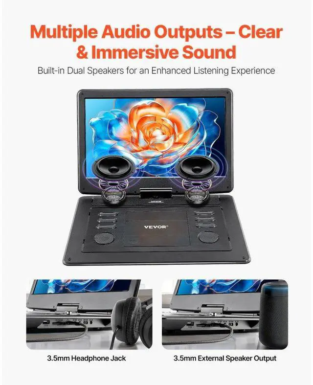 Portable DVD Player 15.6 inch HD Swivel Display Screen 4.5 -5 H Built-in Battery Portable DVD Player Three Power Options Last Memory Function Supports Multiple Playback Formats Multi-device Sync Ideal Companion