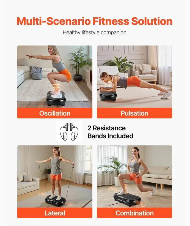 Vibration Plate Exercise Machine Full Body Shaker Fitness Platform Black Outstanding Fitness Experience All-in-One Workout Adjustable Intensity Levels 2 Resistance Bands Silent & Portable