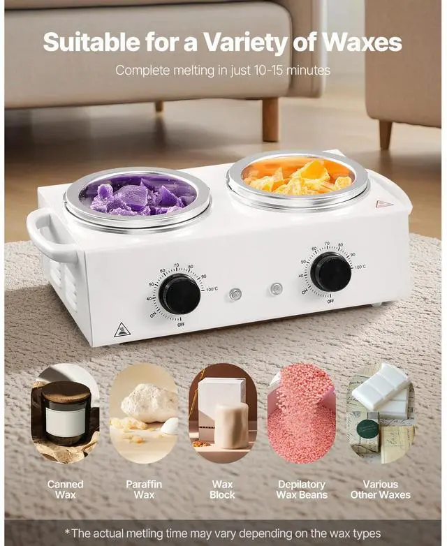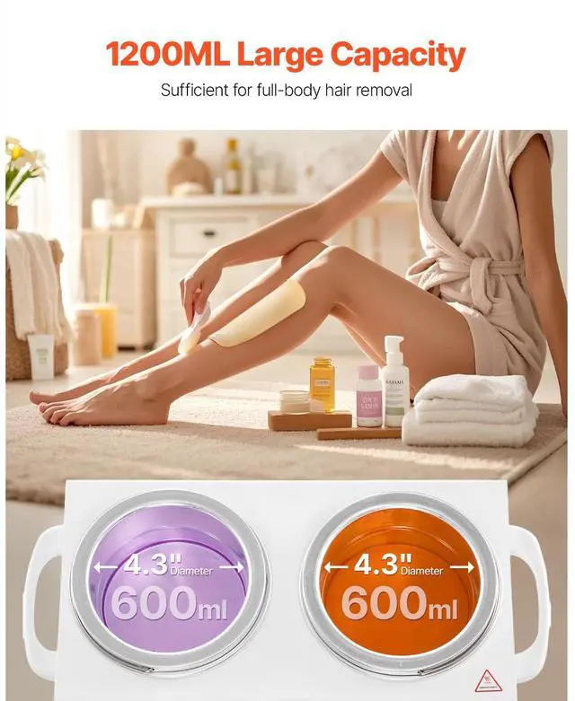 VEVOR Double Wax Warmer 1200ML Professional Dual Wax Heater Pot for Hair Removal Even Heating High-Quality Aluminum Pot 4 Steps to Quickly Melt Wax Suitable for the Whole Body Large Capacity Adjustable