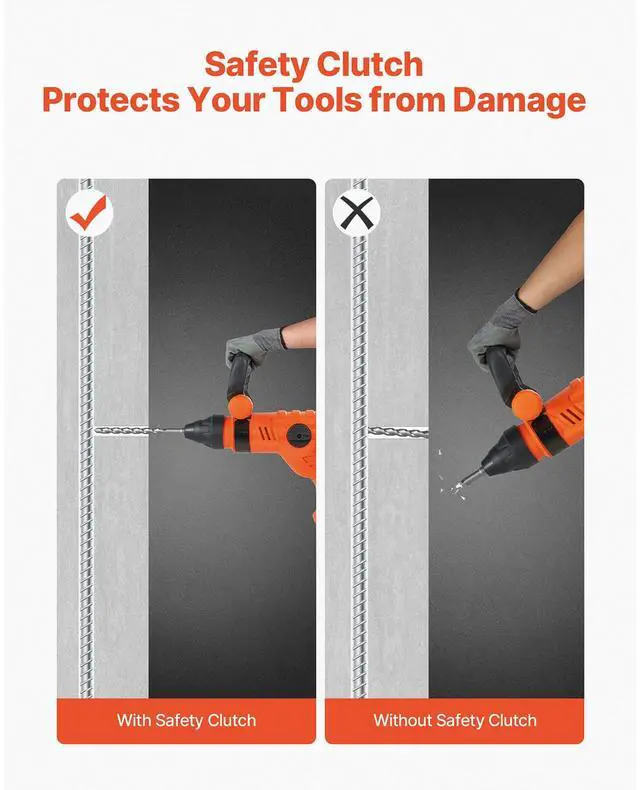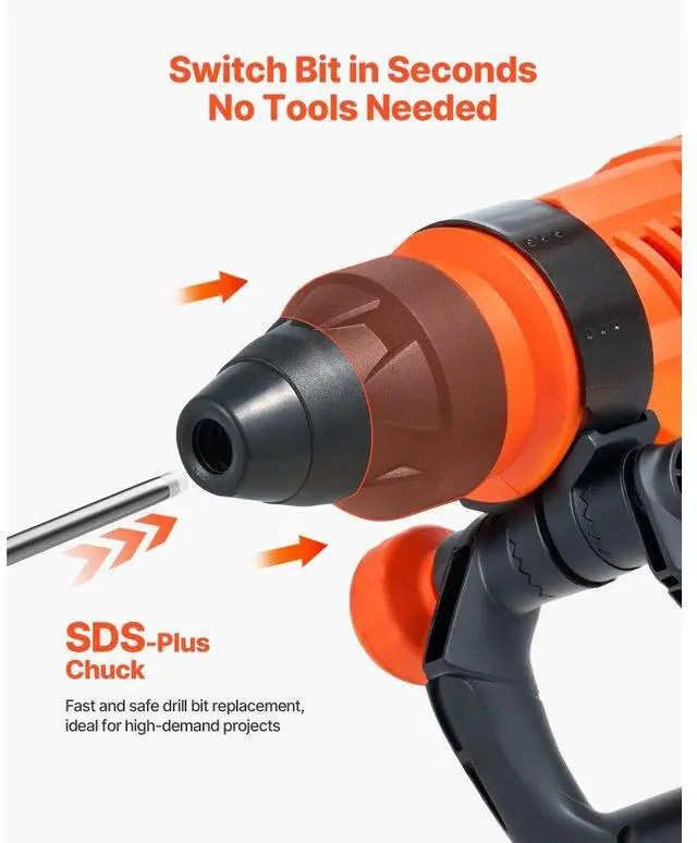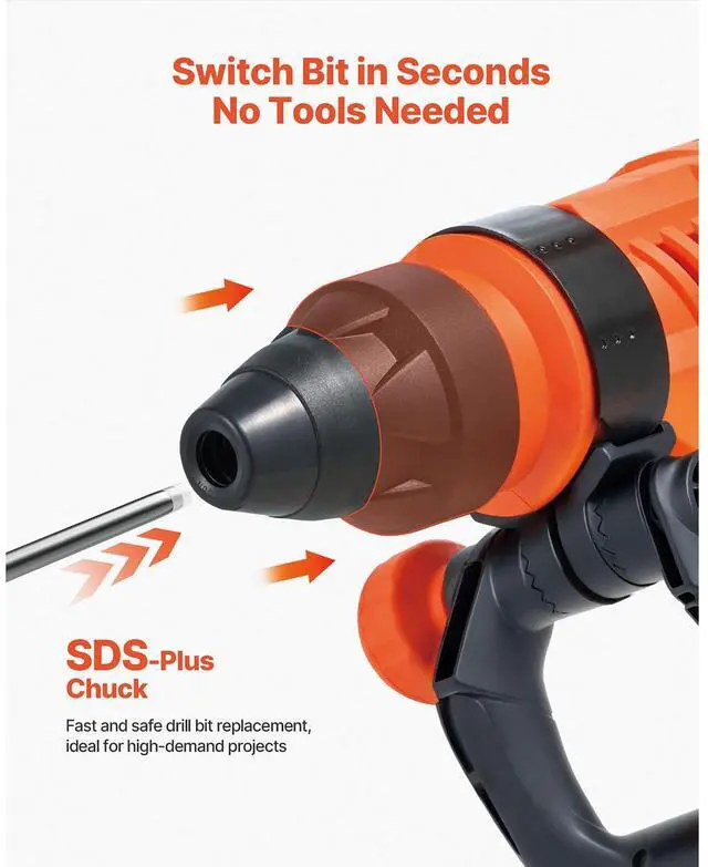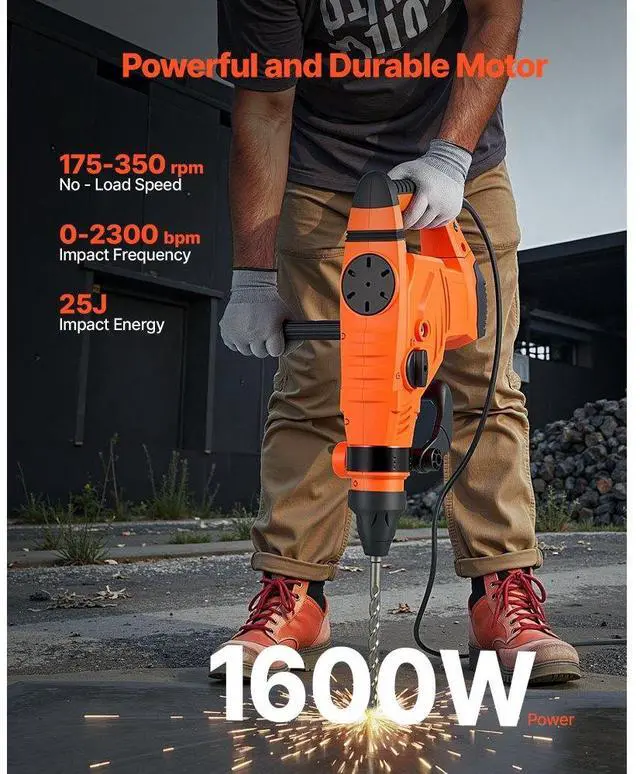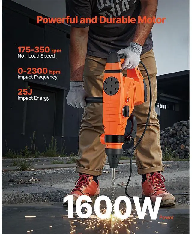 SDS-Max 2-Inch Corded Rotary Hammer Drill Kit 1600W 175-350RPM 3 Functions Multi - function Knob Secure Clutch Ergonomic Handle Portable Carrying Case Lightweight Design
