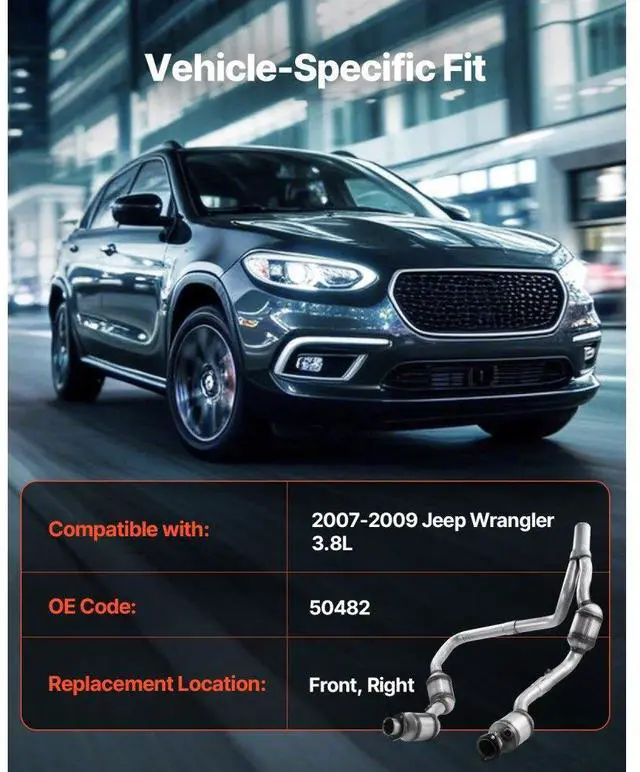 Catalytic Converter Compatible with 2007-2009 Jeep Wrangler 3.8L V6 Front Right OBD III Compliance Vehicle-Specific Model Efficient Purification Durable and Sturdy Support for Driving High Efficiency & Clean