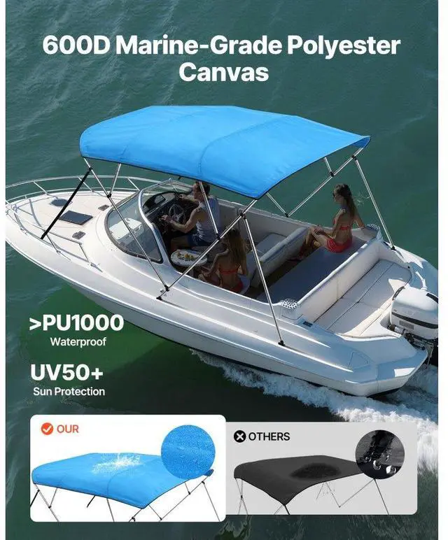 4 Bow Boat Bimini Tops 8'Lx(91"-96")W x 54"H Awning Canopy Pacific Blue Two Folding Options Waterproof & UV Protection Wind-Resistant Design Rust-Resistant Components Easy Storage Multiple Sizes for