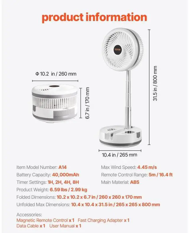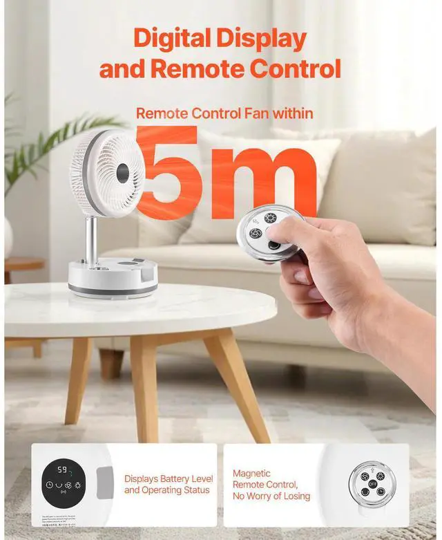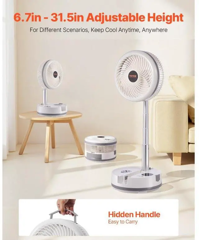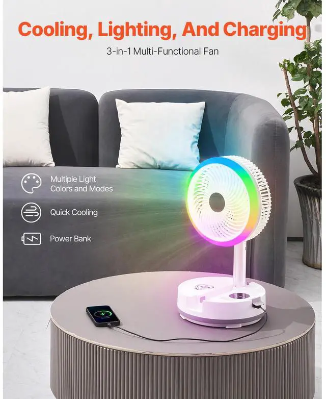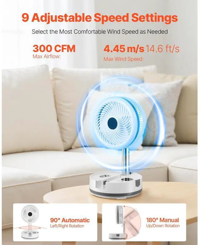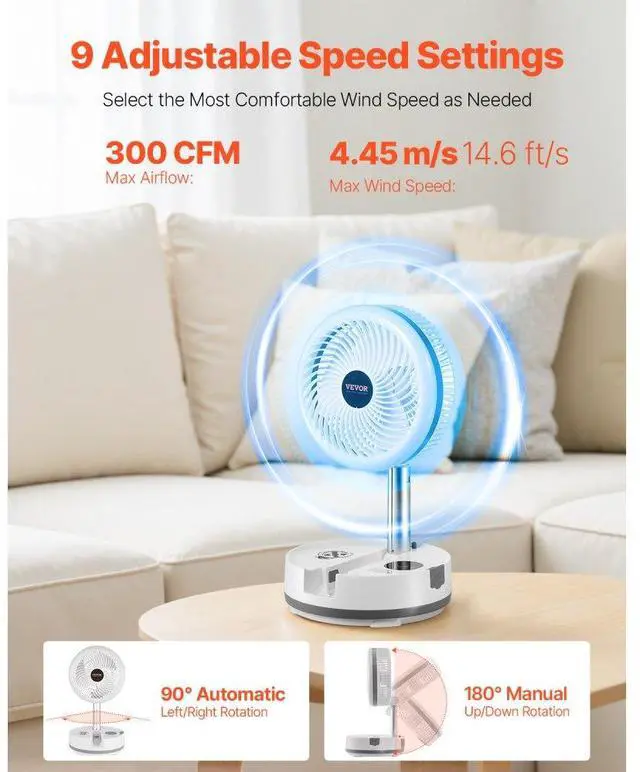 10 inch Foldable Rechargeable Oscillating Fan 3 in 1 Remote 9 Speeds Multi-Functional Rechargeable Fan Strong Wind Power Helps You Sleep Versatile Use Thoughtful