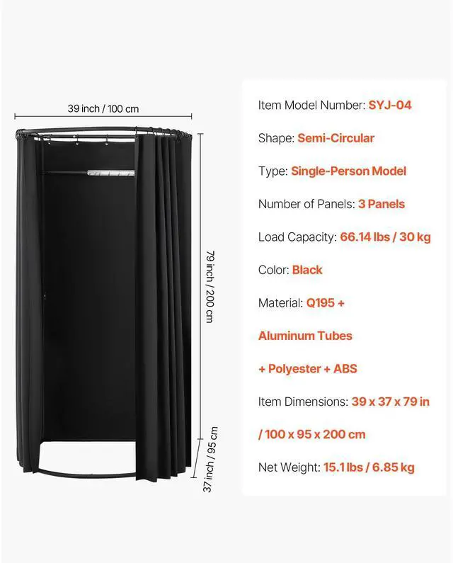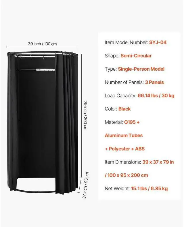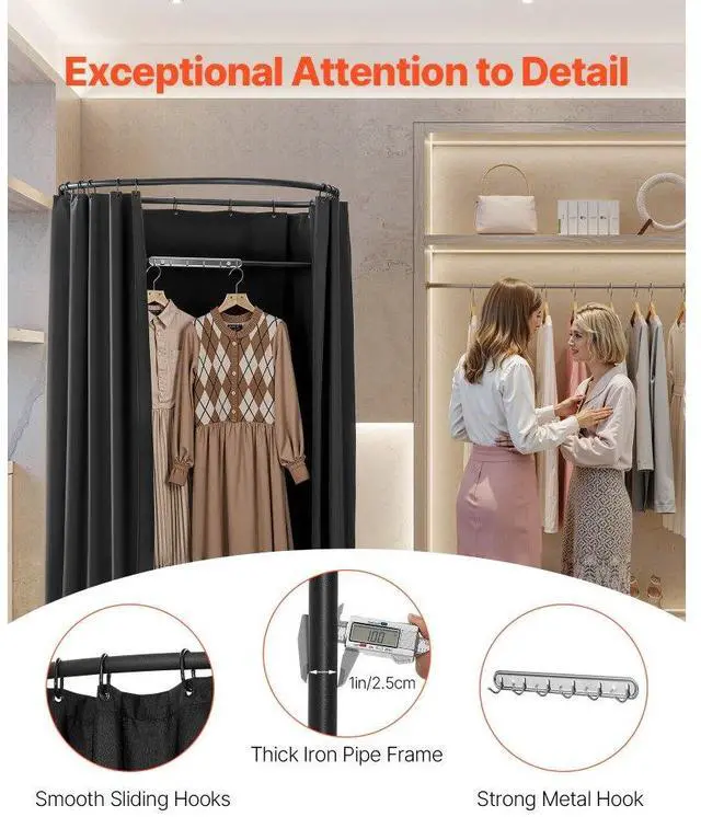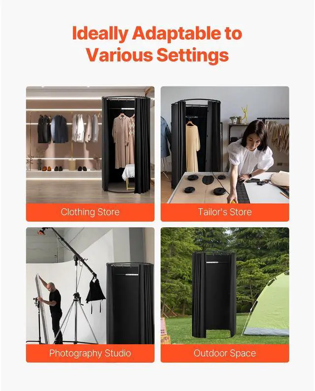VEVOR Fitting Room, Portable Dressing Room with Thick Polyester Curtains, Privacy Space with Shading Curtain and a Hook, for Boutique, Mall, Tailor's Store & Outdoor Activity 39 x 37 x 79 in (Black) Privacy-Protected Fitting Room Light-Blocking Fabric Thoughtful details Wide application Easy assembly Thoughtful details