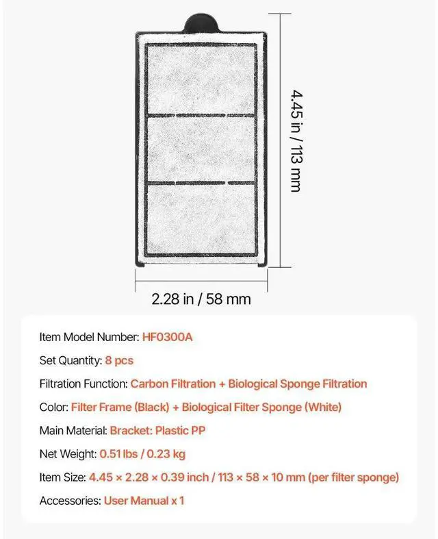 Size: 4.45 x 2.28 x 0.39 inch / 113 x 58 x 10 mm (per filter sponge), Color: Filter Frame (Black) + Biological Filter Sponge (White), Item