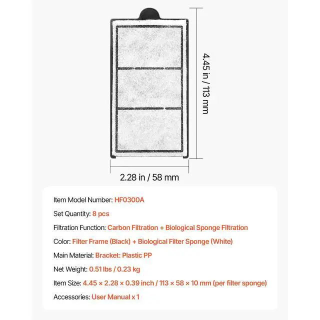 Size: 4.45 x 2.28 x 0.39 inch / 113 x 58 x 10 mm (per filter sponge), Color: Filter Frame (Black) + Biological Filter Sponge (White), Item