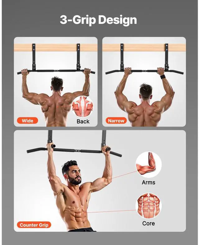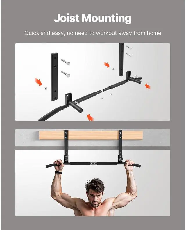 • Engineered for optimal muscle engagement, the VEVOR Joist Mount Pull Up Bar offers wide, narrow, and neutral grips to diversify your upper body training and maximize workout efficiency.
