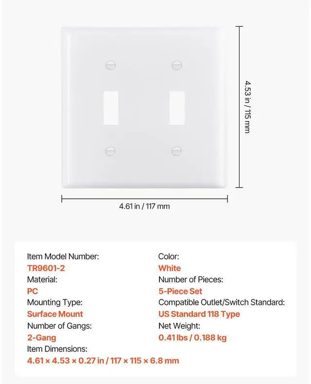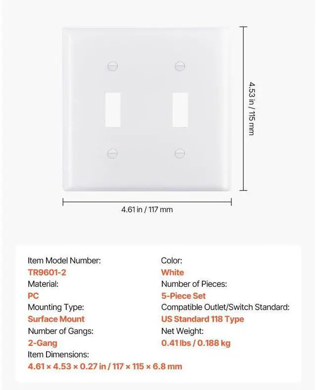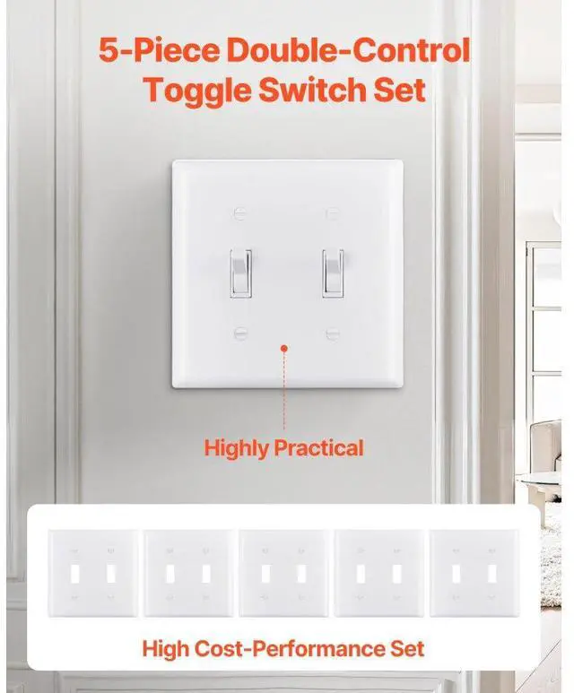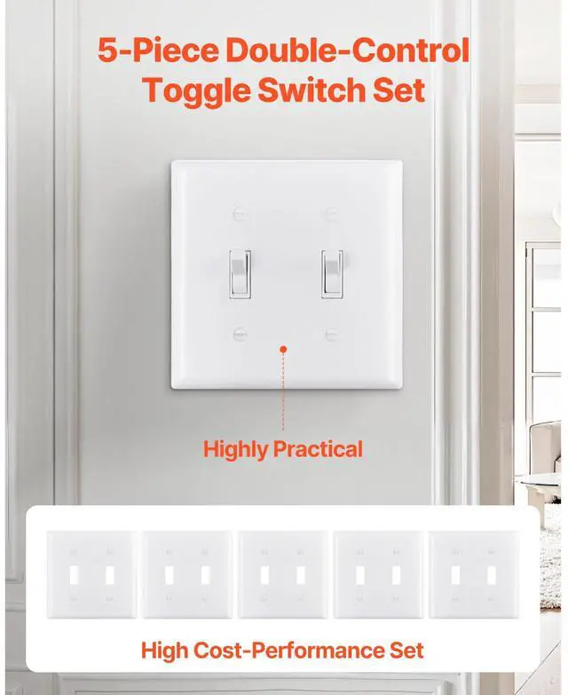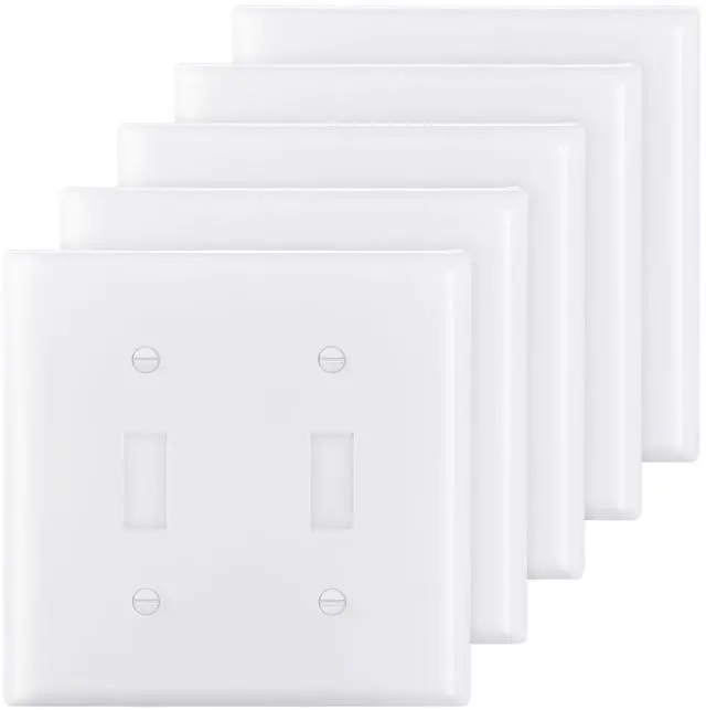 2-Gang Toggle Light Switch Outlet Covers Wall Plates 4.61 x 4.53 in White 5 Pack Convenient Dual Control Wide Compatibility Enhanced Security Durability Construction Design Versatility Easy to Install Number of