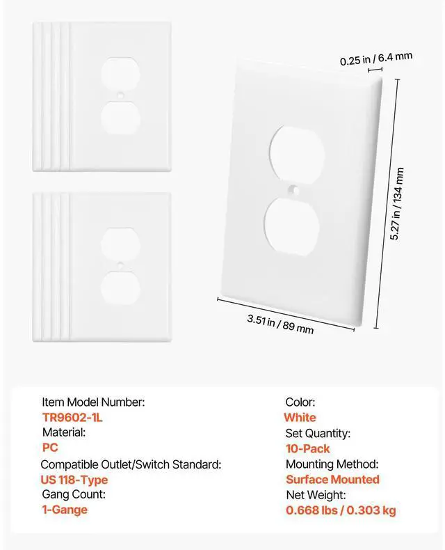 Compatible Outlet/Switch Standard: US 118-Type, Color: White, Item