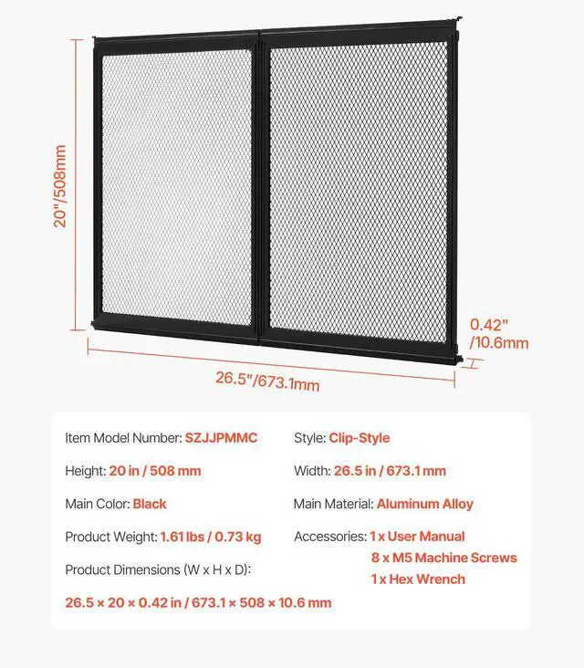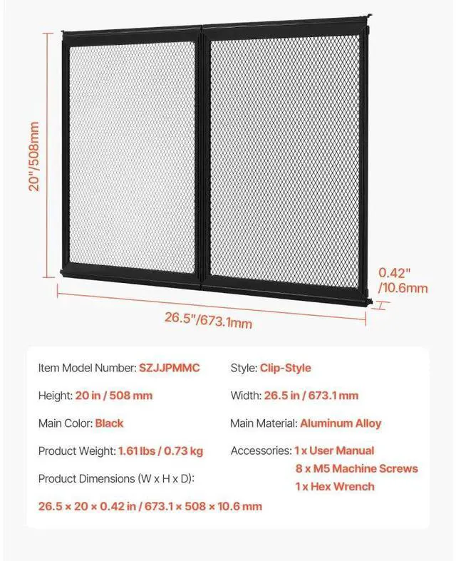 Product Weight: 1.61 lbs / 0.73 kg, Style: Clip-Style, Height: 20 in / 508 mm, Width: 26.5 in / 673.1 mm, Main