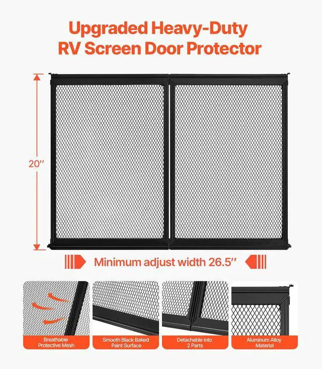 RV Screen Door Protector 26.5 x 20 inch Door Grille Easy to Install Disassemble Pet-Friendly Reinforced Frame Enhanced Security Easy to Disassemble Simple Installation Aluminum Alloy