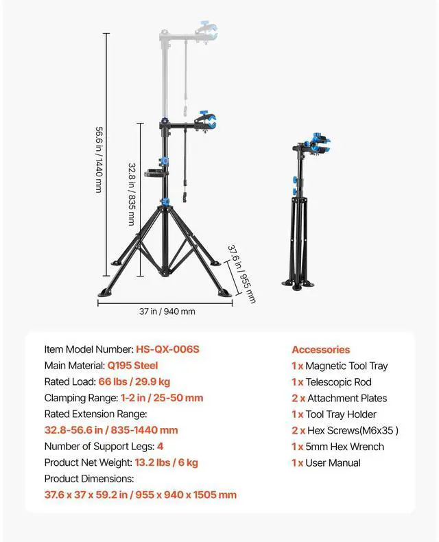 Rated Extension Range: 32.8 - 56.6 in (835-1440 mm)