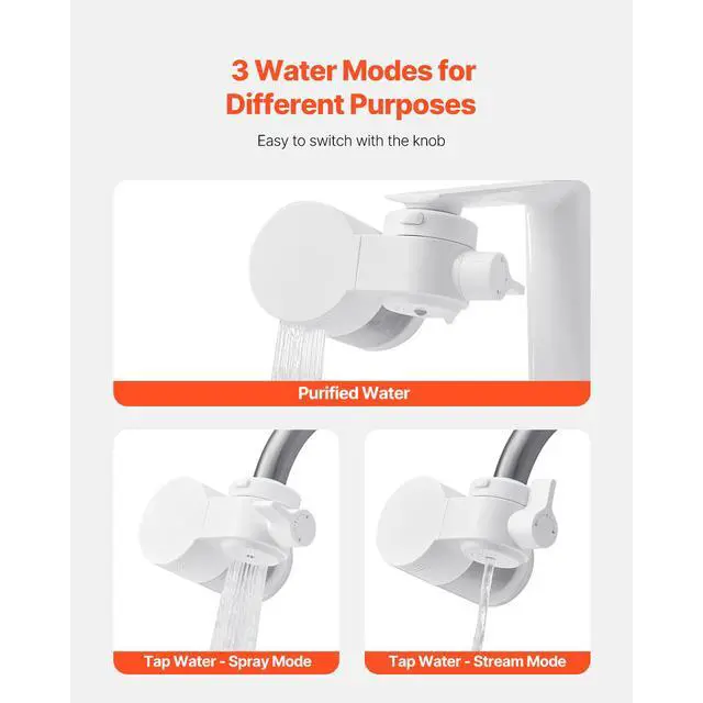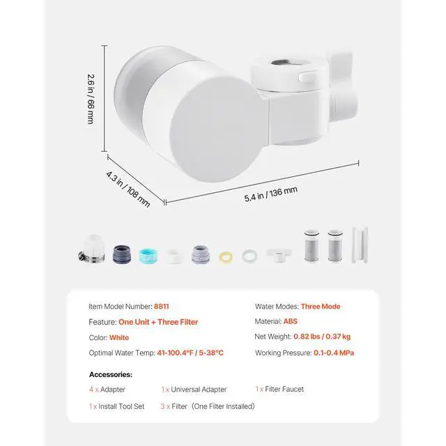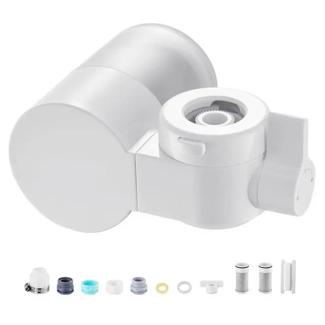 Faucet Mount Water Filters Sink Water Purifier for Kitchen White Horizontal Faucet Mount Water Filter Purified Water High-Quality Filters Simple Installation Versatile Use 320 Gallons / 1200L