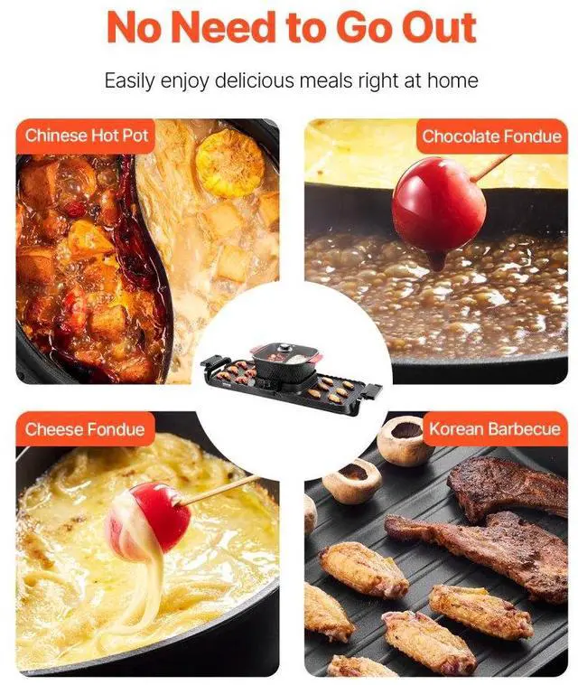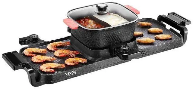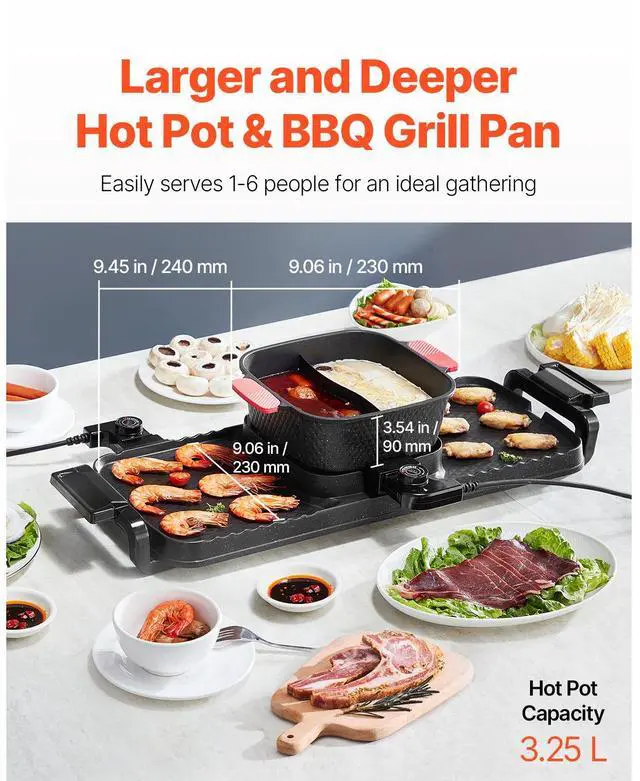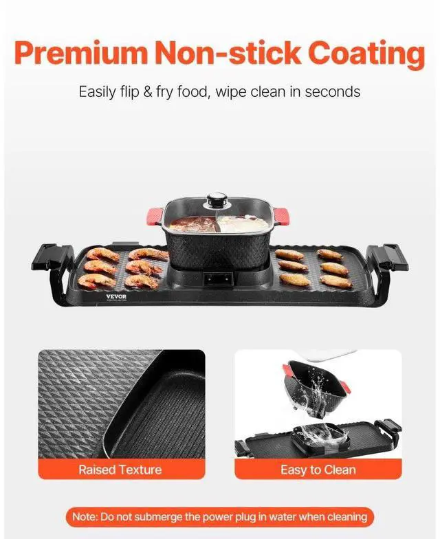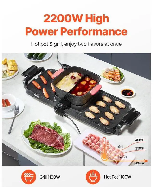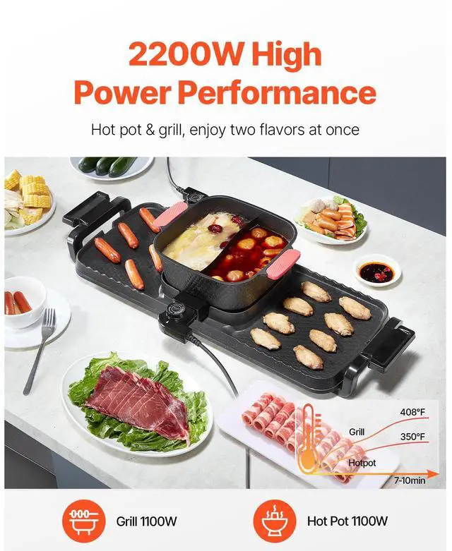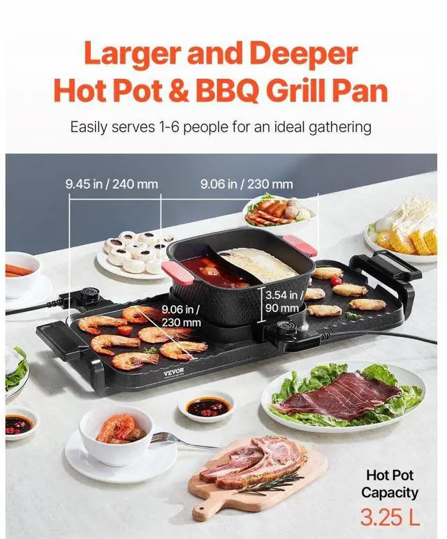 Hot Pot with Grill 2300W 2-in-1 Electric Smokeless BBQ Pan with Removable Pot Multi-function Cooking Fast Heating Great for Groups Independent Temperature Control Innovative Oil Box Important Notice Grill