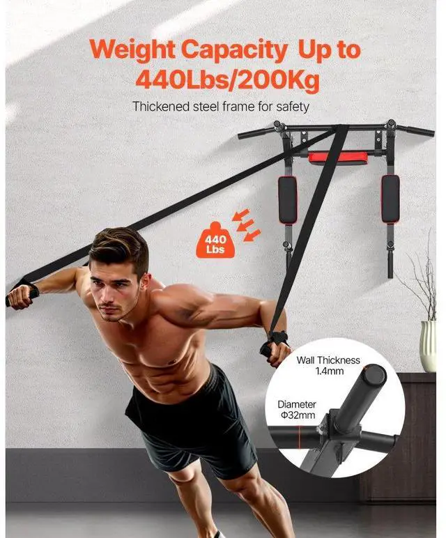 Multifunctional Pull Up Bar Wall Mounted Chin Up Bar Dip Station Heavy Duty More Possibilities Durable and Robust Multifunctional Thoughtful Design Space-Saving Multiple