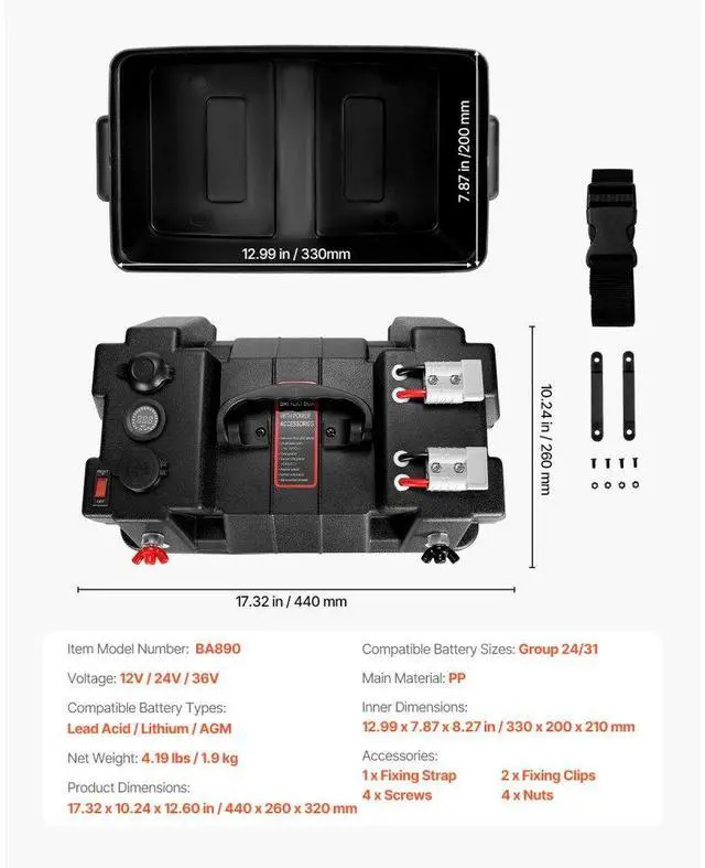 Battery Box Group 24/31 Smart Battery Box 12V/24V/36V for Trolling Motor Smart Battery Management Strong Compatibility Multiple Device Connections Wide Application Battery Safeguard Dual Handles