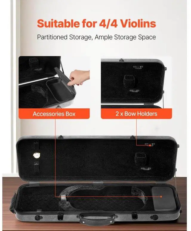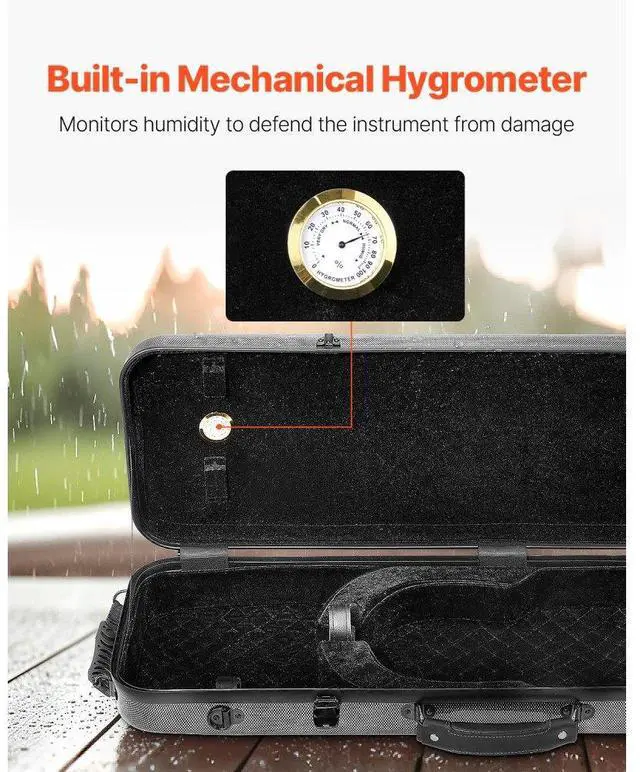 Portable Composite Carbon Fiber 4/4 Full Size Violin Case Oblong Carrying Bag Durable Shielding Composite Carbon Fiber Exterior Reduced Load for Travel Violin Body Support Dual Bow Holder Design Keeps Its