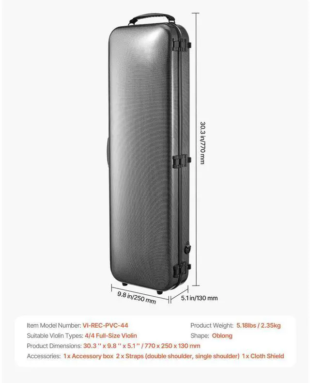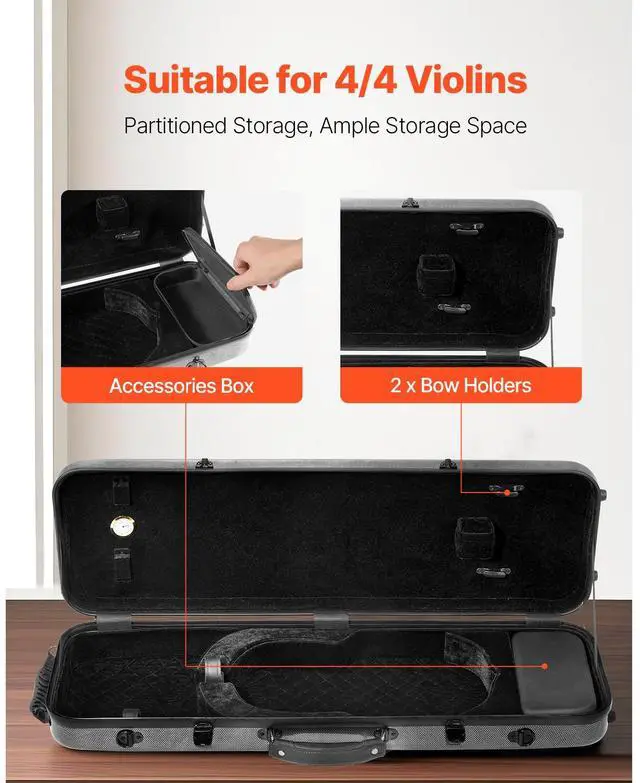 • Portable Composite Carbon Fiber 4/4 Full Size Violin Case Oblong Carrying Bag