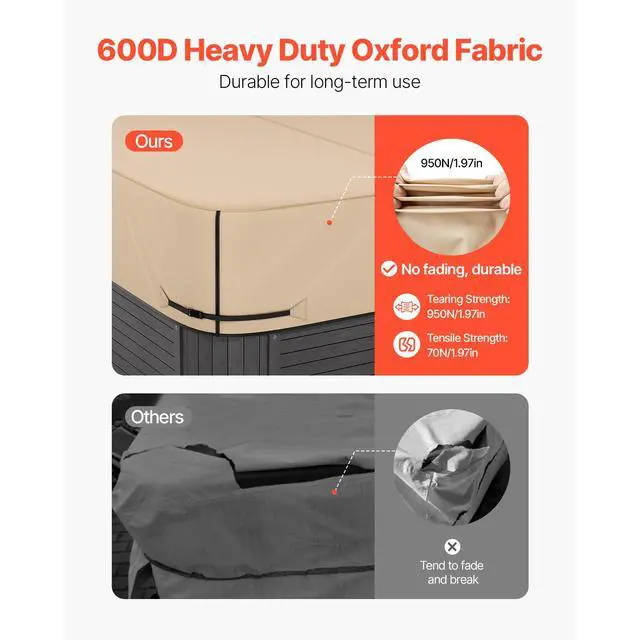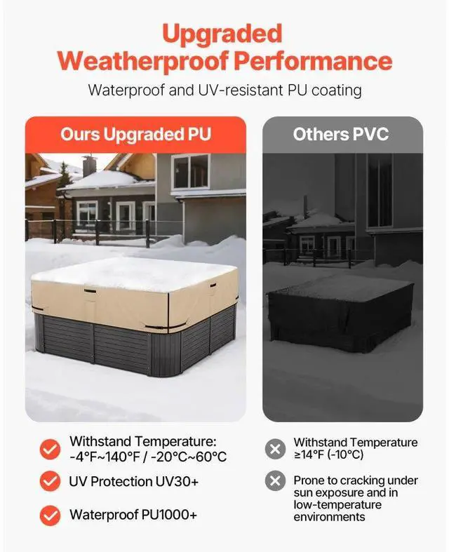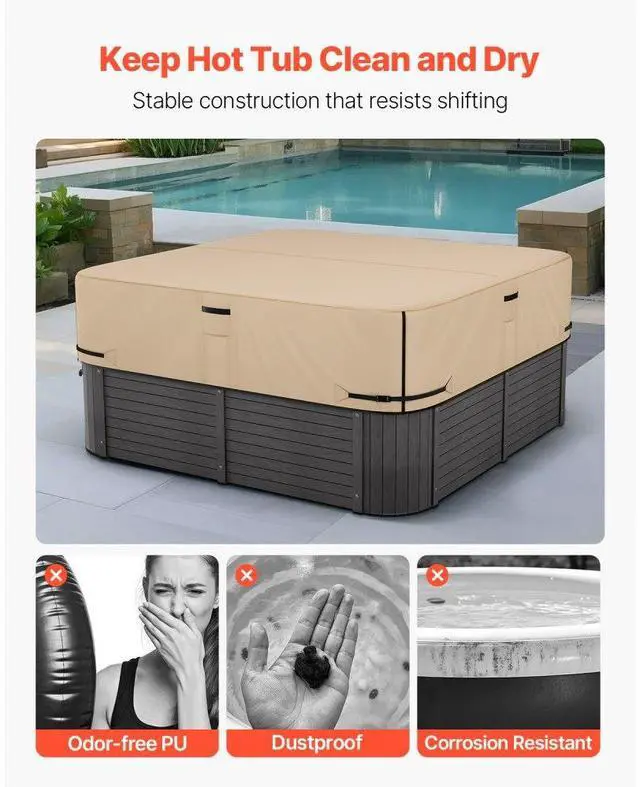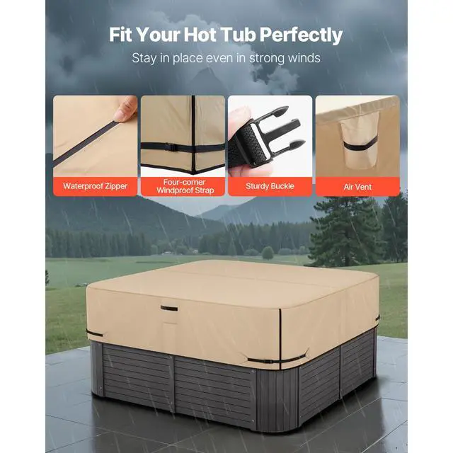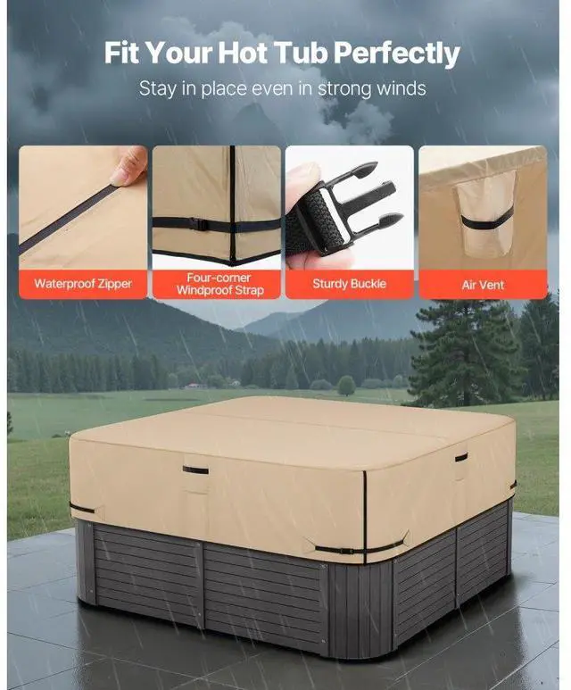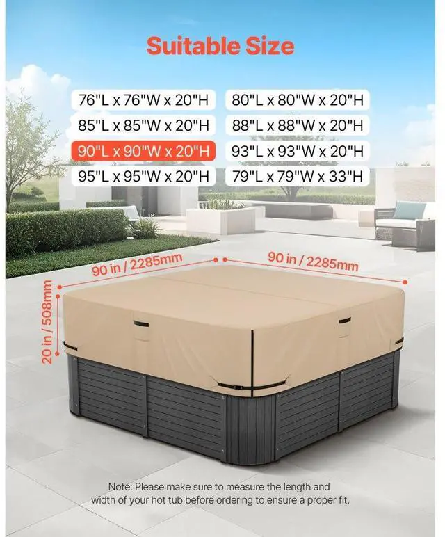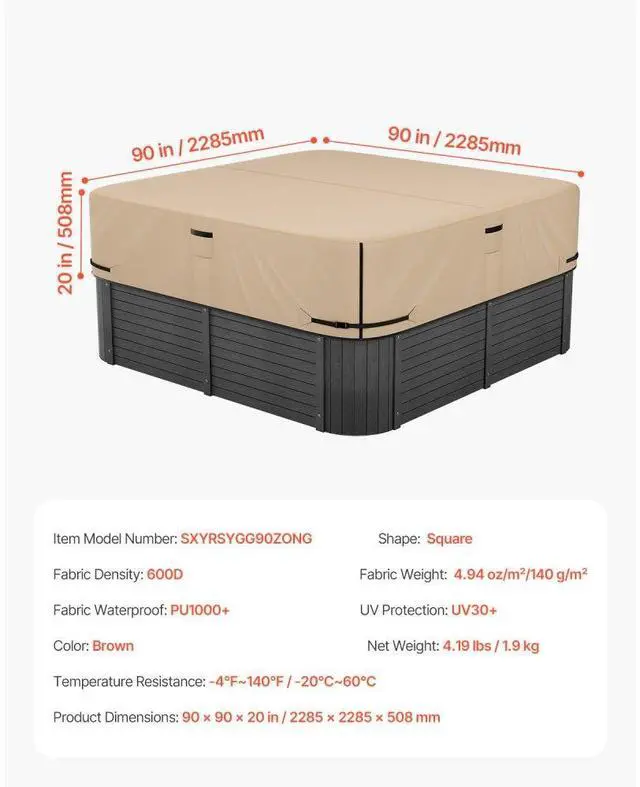 Outdoor Hot Tub Cover 90 x 90 x 20 Inch Weatherproof and Waterproof Brown Outdoor Hot Tub Cover Heavy-Duty Oxford Fabric Weatherproof Fit Well Easy Installation Lightweight for Easy