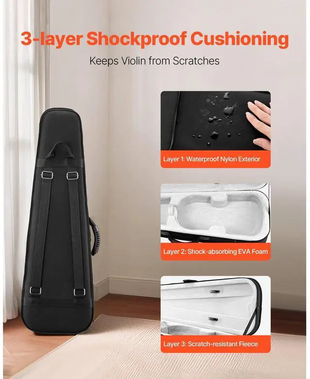 Portable Nylon Fabric 4/4 Full Size Violin Case Anti-Scratch Travel Carrying Bag Durable Shielding Durable Nylon Fabric Reduced Load for Travel Violin Body Support Ample Storage Space Keeps Its