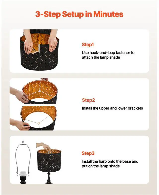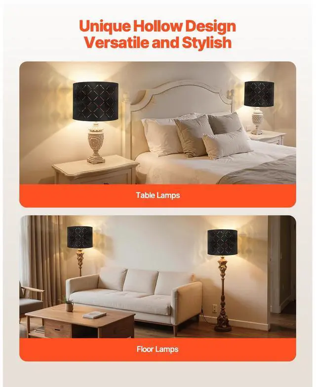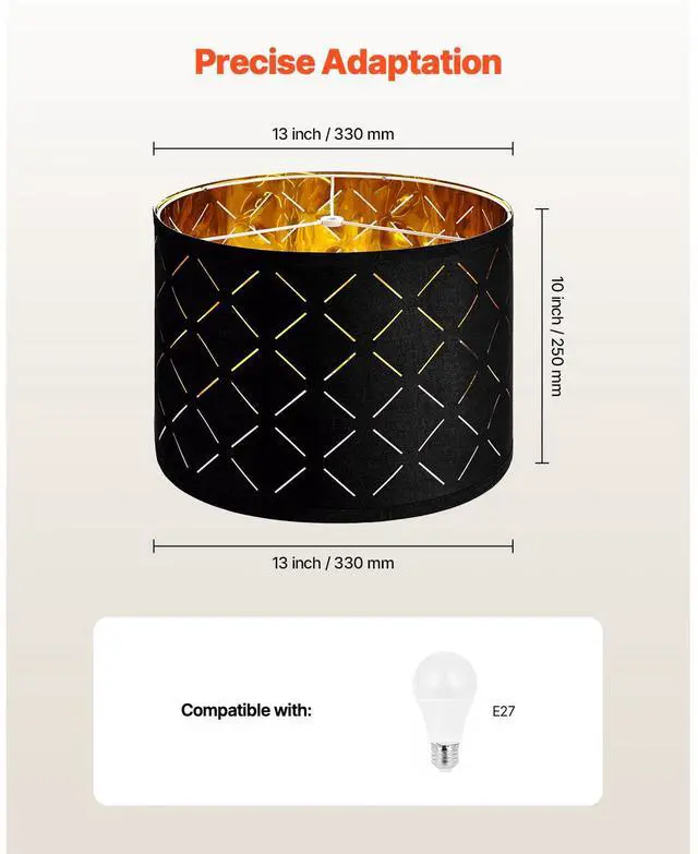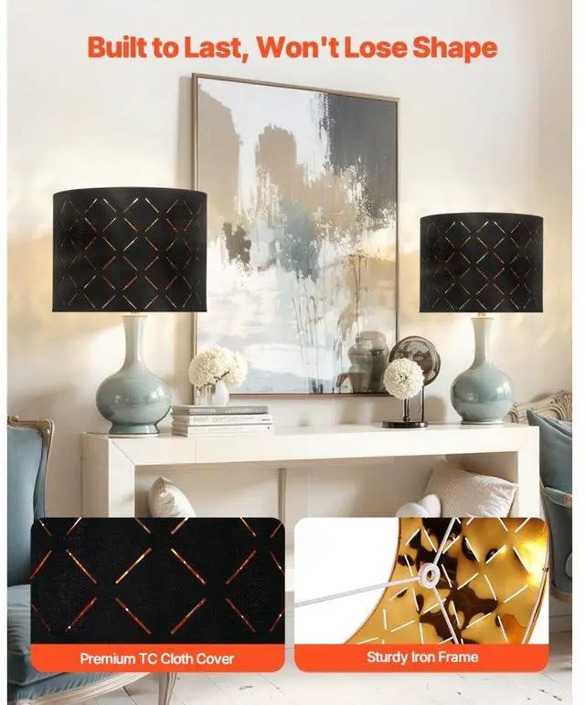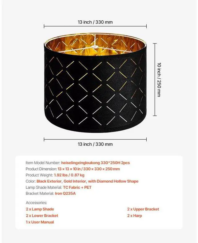 Drum Lamp Shade 2 Set 13 x 13 x 10 in Medium Round Lampshade with Harp (Black) Excellent Light Diffusion Stable and Durable Ideal Fit Easy Installation Elegant Design Various Styles