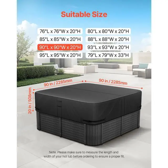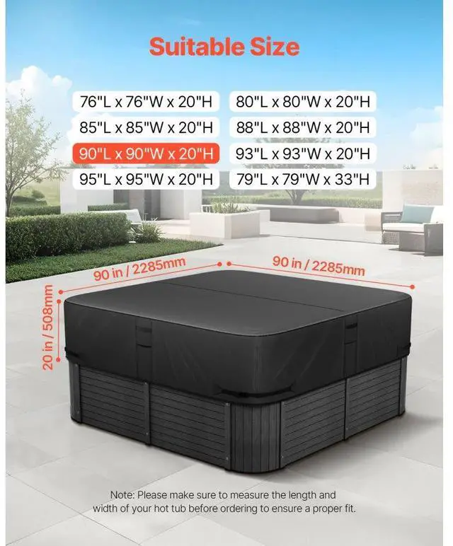 Outdoor Hot Tub Cover 90 x 90 x 20 Inch Weatherproof and Waterproof Black Outdoor Hot Tub Cover Heavy-Duty Oxford Fabric Weatherproof Fit Well Easy Installation Lightweight for Easy