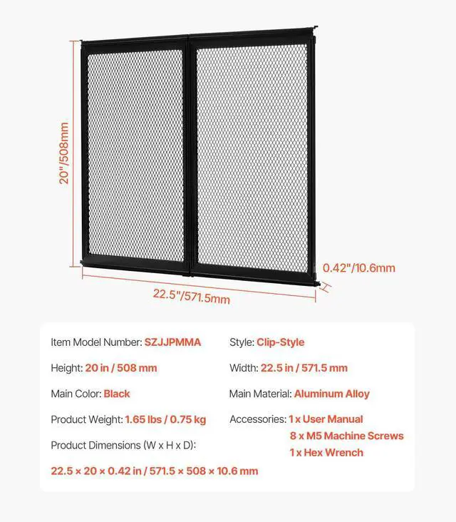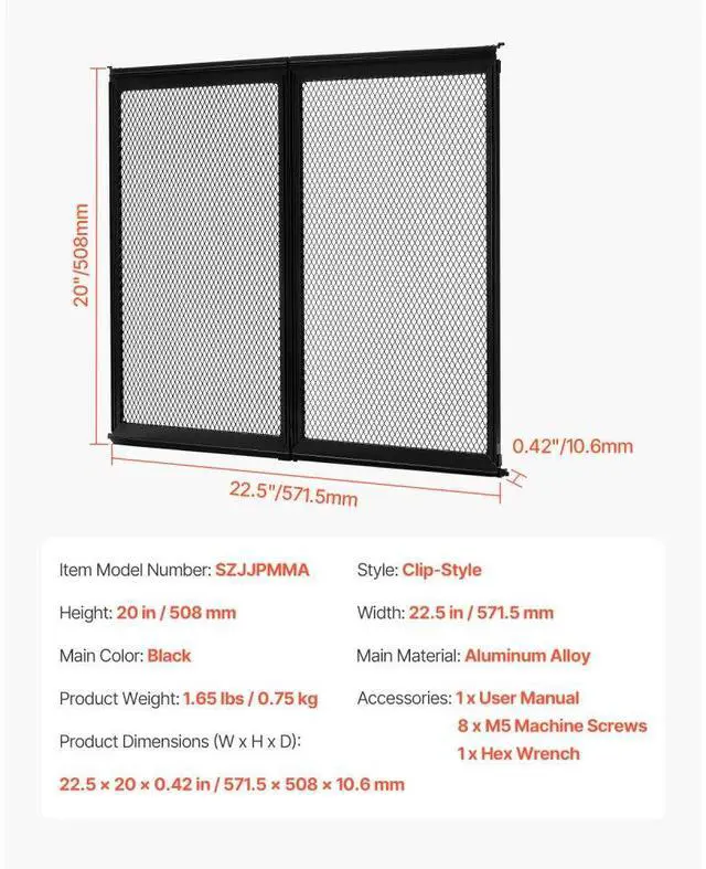 Product Weight: 1.65 lbs / 0.75 kg, Style: Clip-Style, Height: 20 in / 508 mm, Width: 22.5 in / 571.5 mm, Main