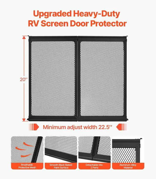 RV Screen Door Protector 22.5 x 20 inch Door Grille Easy to Install Disassemble Pet-Friendly Reinforced Frame Enhanced Security Easy to Disassemble Simple Installation Aluminum Alloy