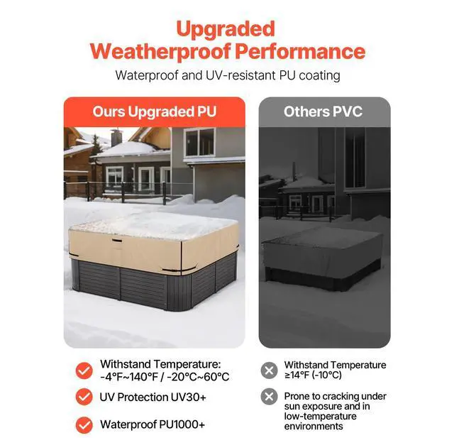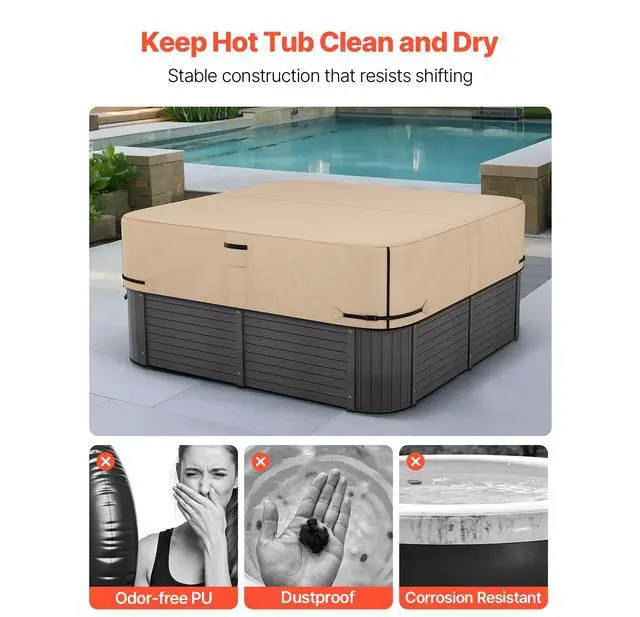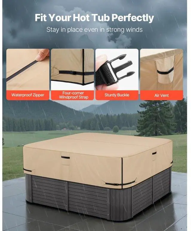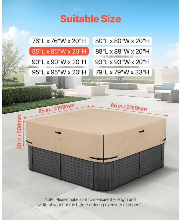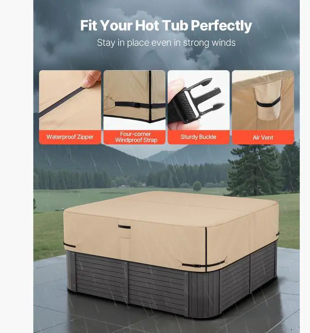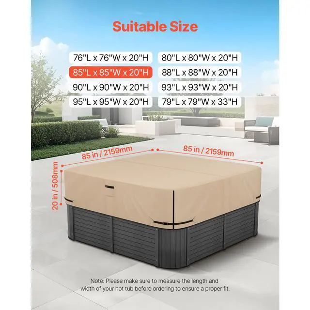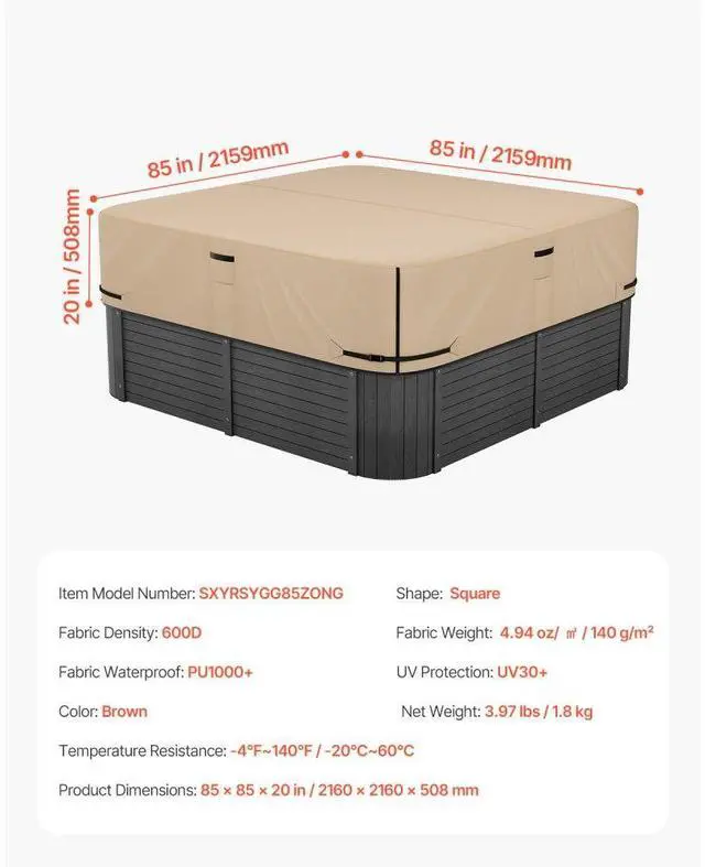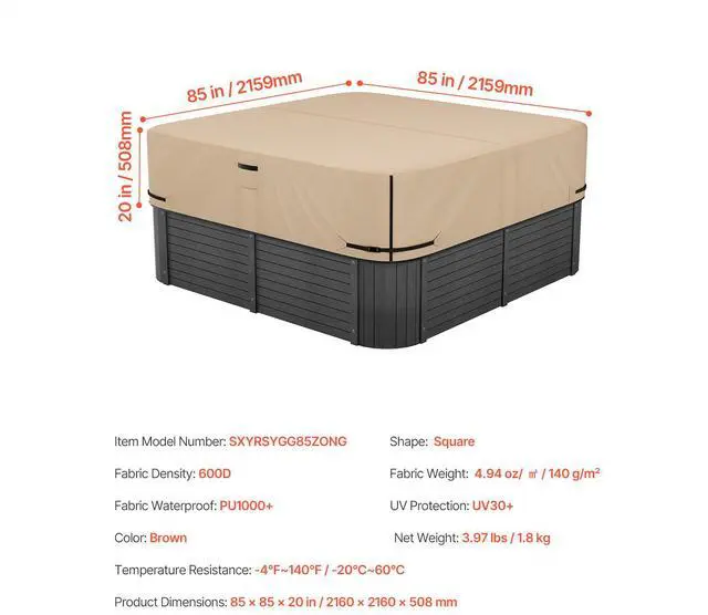 Outdoor Hot Tub Cover 85 x 85 x 20 Inch Weatherproof and Waterproof Brown Outdoor Hot Tub Cover Heavy-Duty Oxford Fabric Weatherproof Fit Well Easy Installation Lightweight for Easy