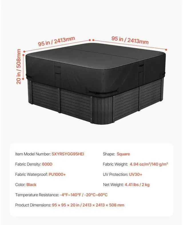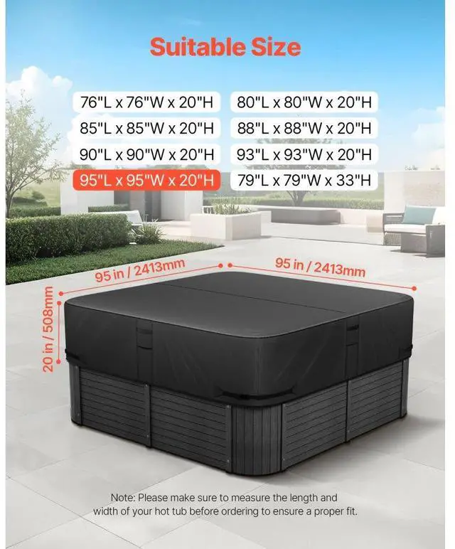 Outdoor Hot Tub Cover 95 x 95 x 20 Inch Weatherproof and Waterproof Black Outdoor Hot Tub Cover Heavy-Duty Oxford Fabric Weatherproof Fit Well Easy Installation Lightweight for Easy