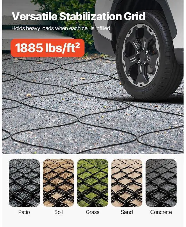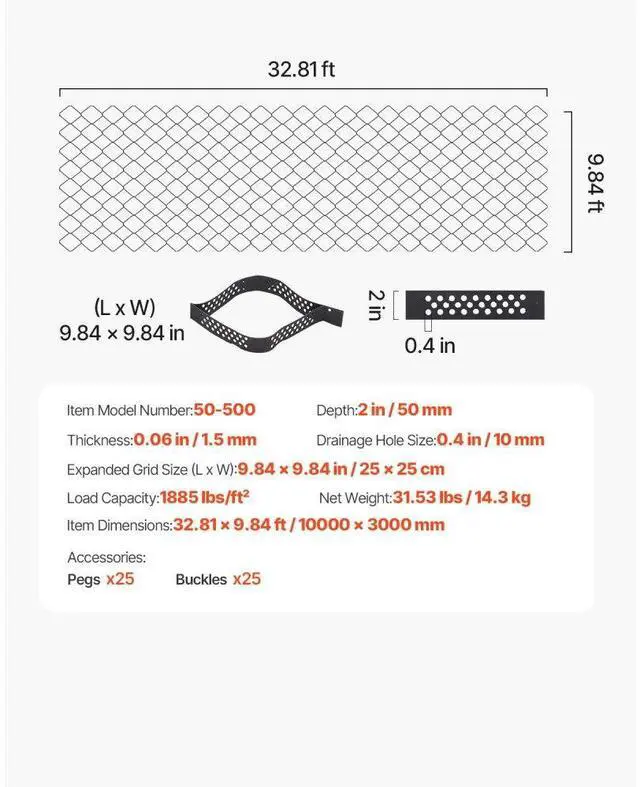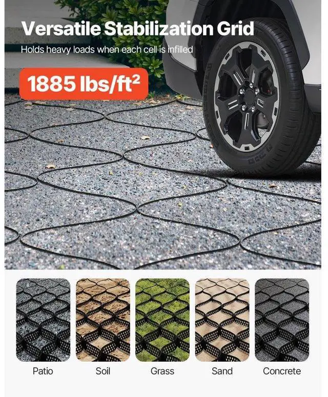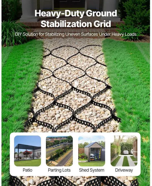 Gravel Grid, 2 Inch Depth, 32.81 x 9.84 FT / 10000 x 3000 mm, 1880 LBS Per Sq ft Grass Ground Retainer, Permeable Geo Grids Driveway Stabilization, for Garden, Patio, Walkway, RV Parking Slopes
