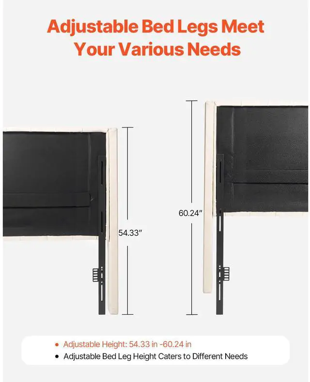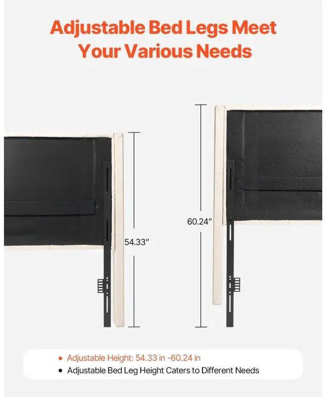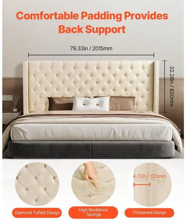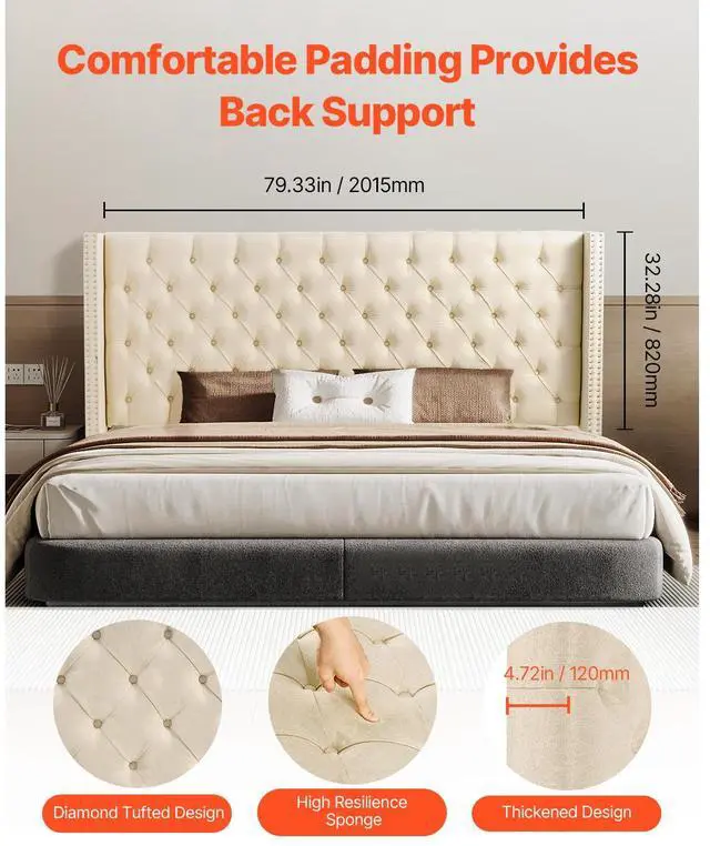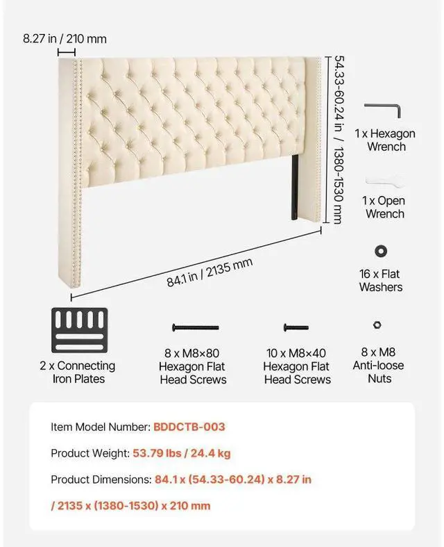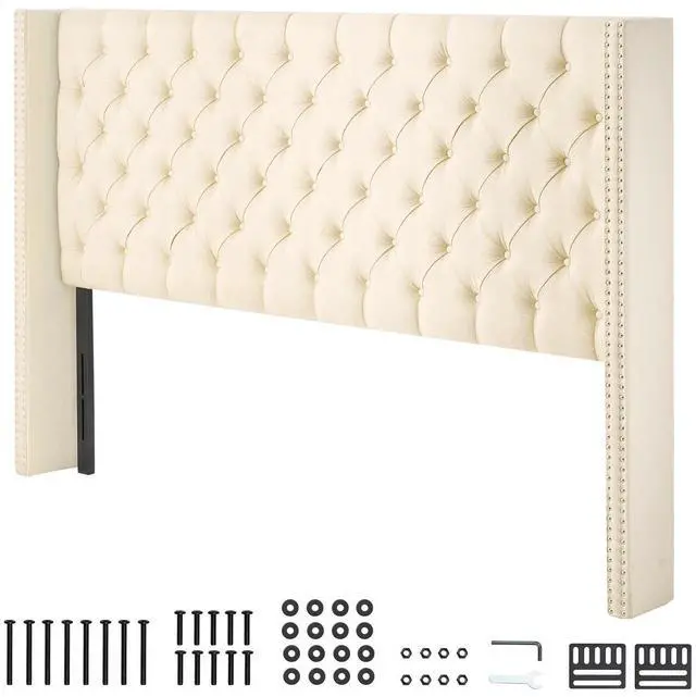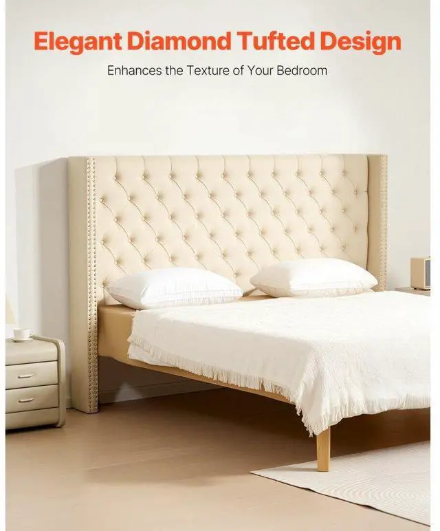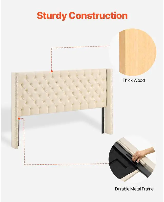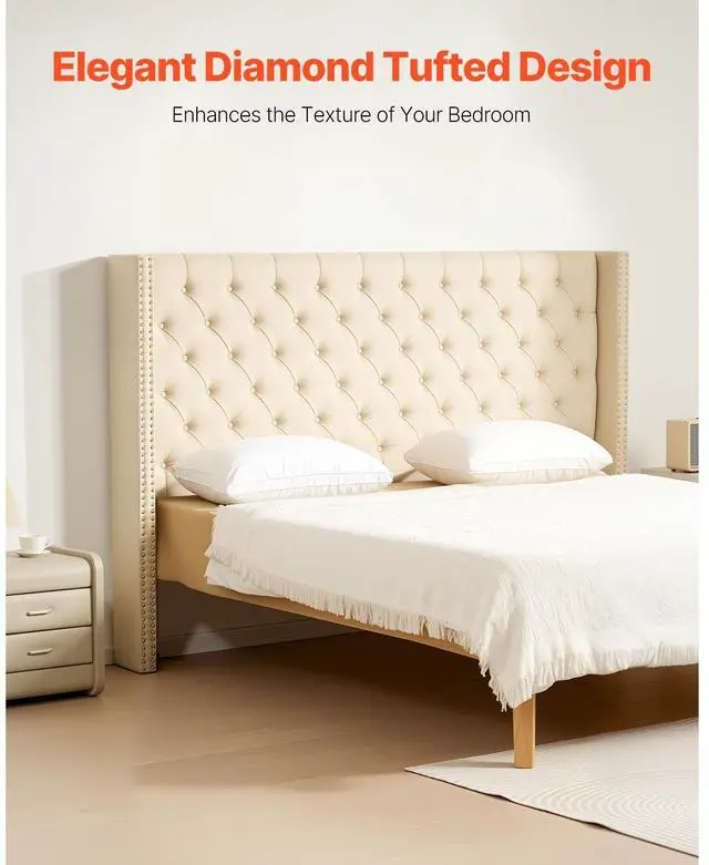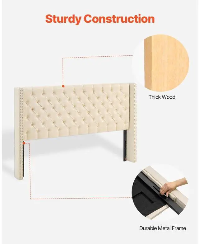 VEVOR Headboard, King Size Headboard with Adjustable Height, Comfortable Diamond Tufted for King Size Bed, W 84.1 x H ( 54.33 - 60.24 ) x D 8.27 in, Ideal for Bedroom, Hotel, Homestay, Dormitory, Cream Elegant Design Memory Foam Backrest Flexible Adjustment Sturdy and Durable Structure Easy Assembly Experience Easy to Clean