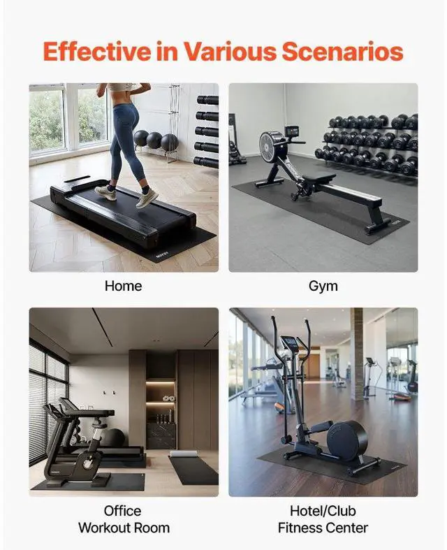Treadmill Mat for Carpet Floor 0.16" Thick 24"x51" Exercise Equipment Mat Exercise Equipment Mat Shock Absorption & Noise Reduction Enhanced Security Waterproof & Easy to Clean Versatile Use High-Density PVC Thickness: 0.16 in / 4 mm, Type: Flat, Color: Black, Item