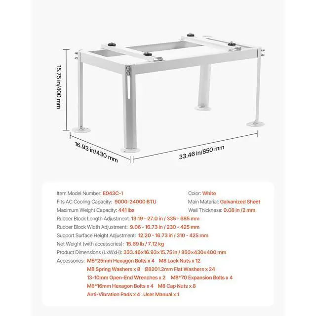 Fits AC Cooling Capacity: 9000-24000 BTU