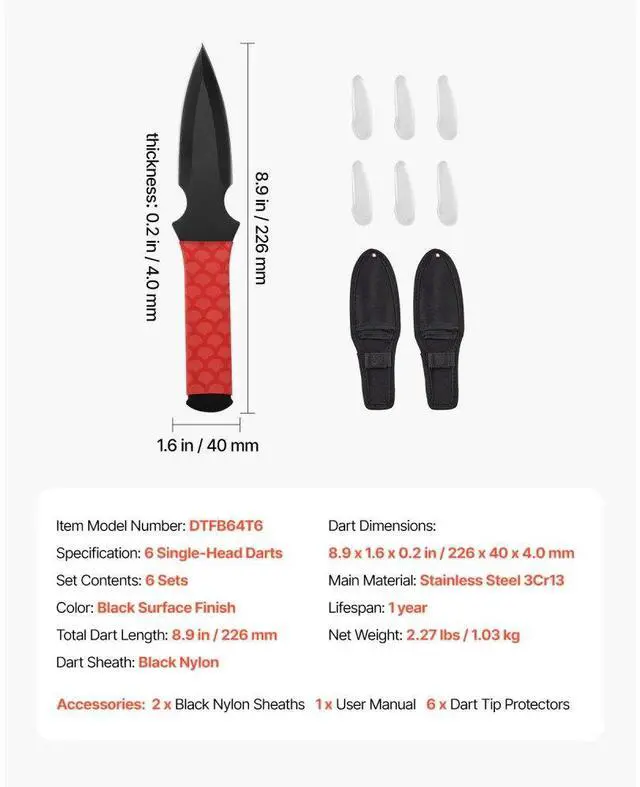 Dart Dimensions: 8.9 x 1.6 x 0.2 in / 226 x 40 x 4.0 mm