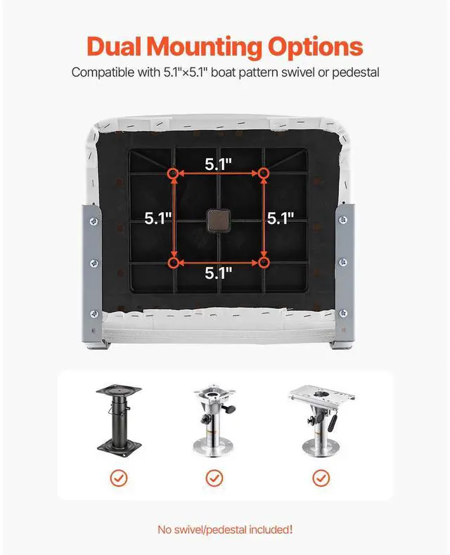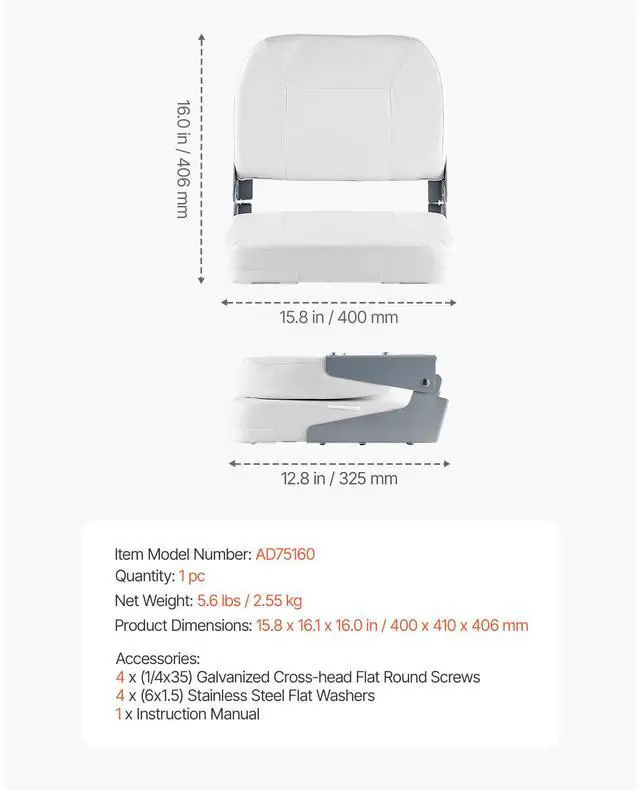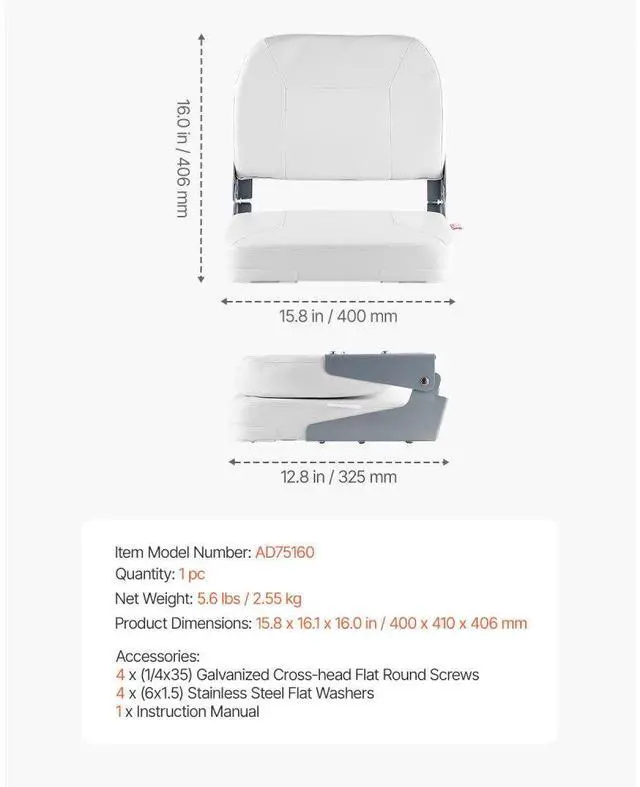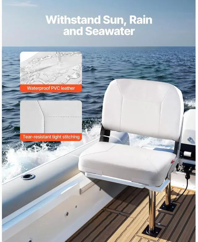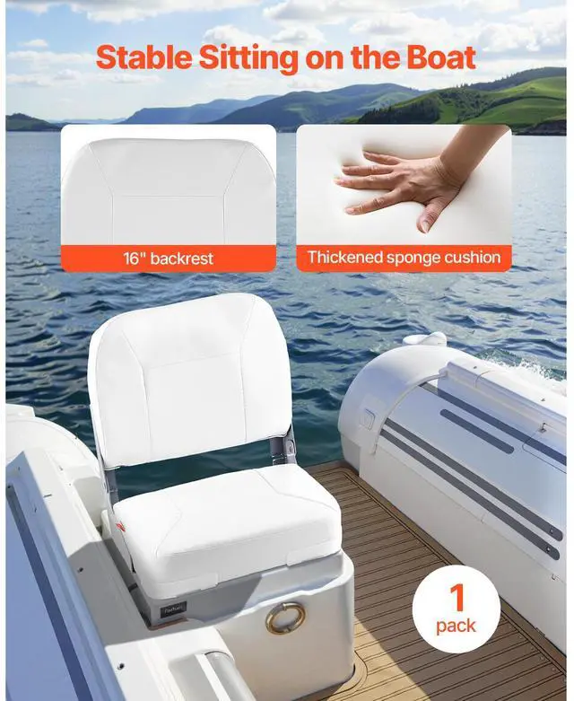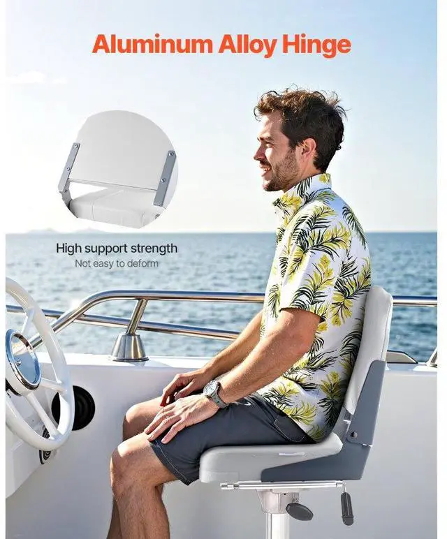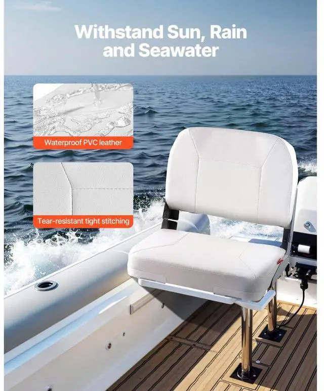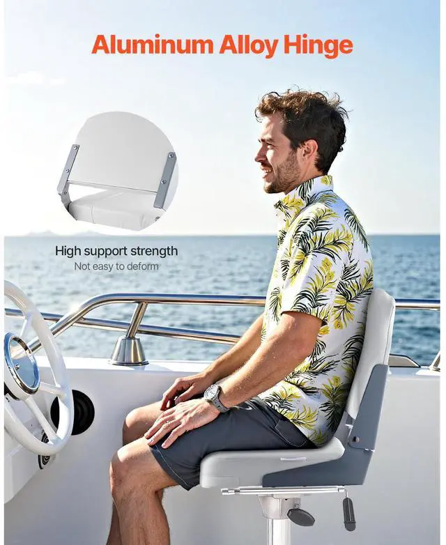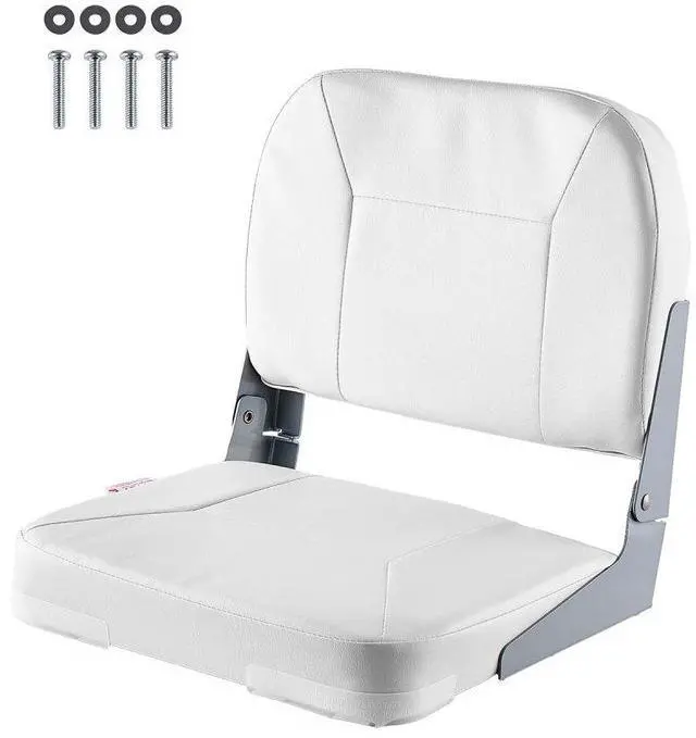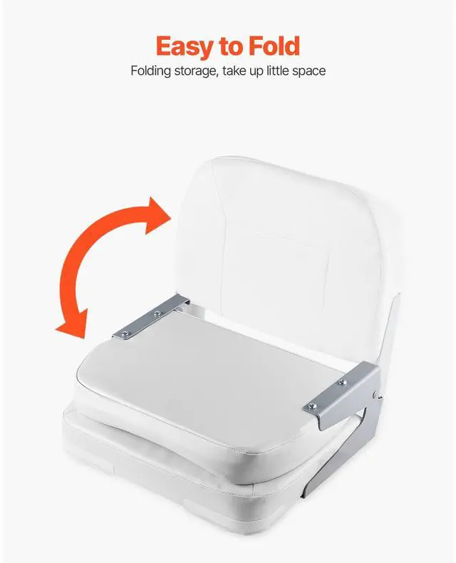 VEVOR Boat Seat Low Backrest Folding Fishing Boat Seat Sponge Cushion White For Harshest Marine Conditions Thick Cushioned Comfort Easy to Store Easy to Install Suitable for Various Boats High-Strength Support Item