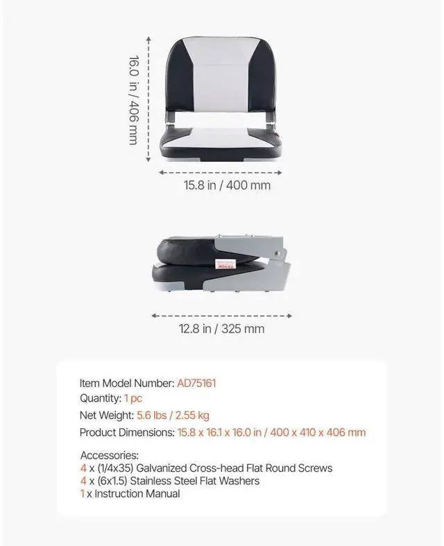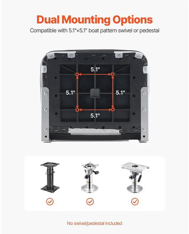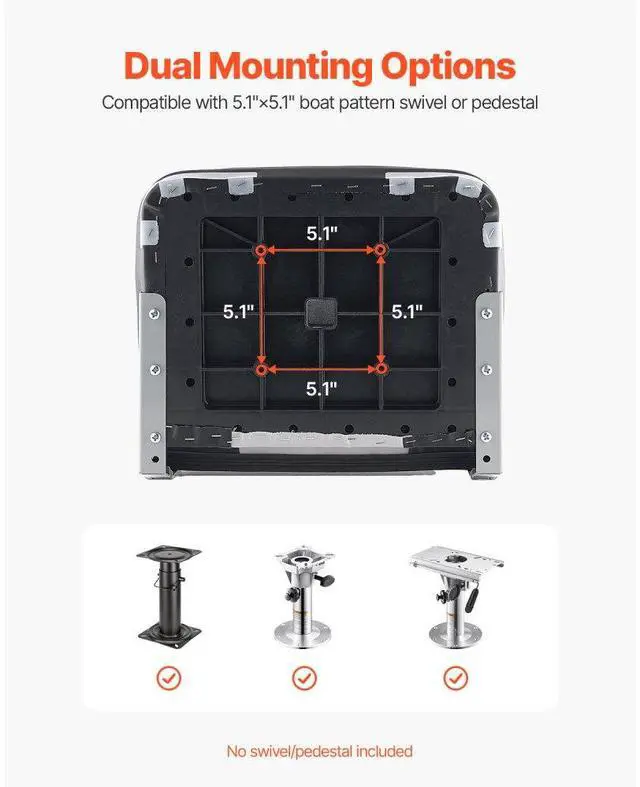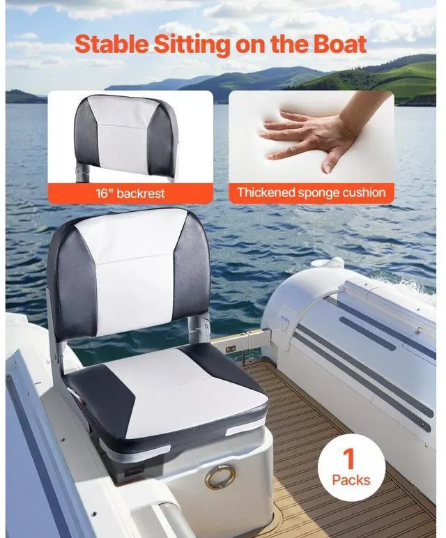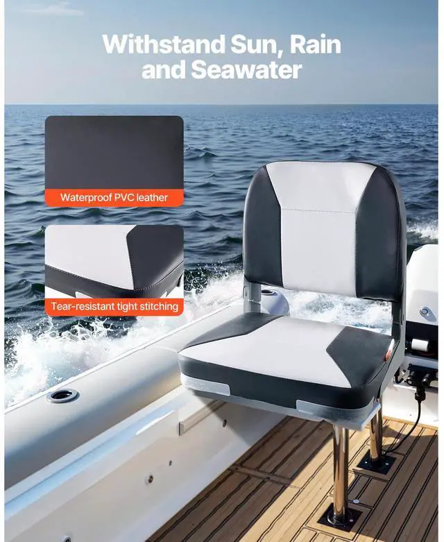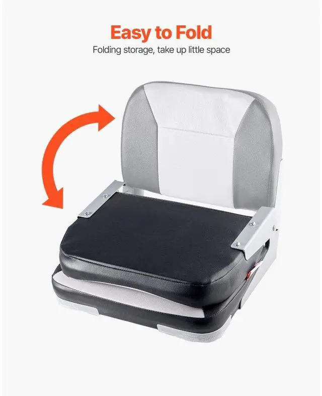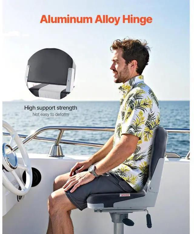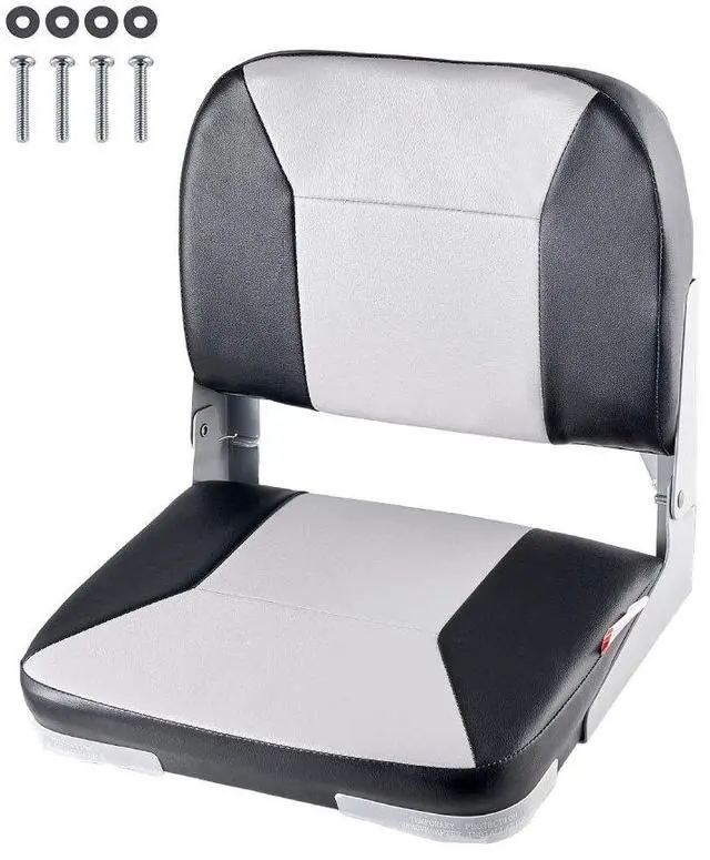 VEVOR Boat Seat Low Backrest Flip Up Boat Seat Sponge Cushion Black & Grey For Harshest Marine Conditions Thick Cushioned Comfort Easy to Store Easy to Install Suitable for Various Boats High-Strength Support Item