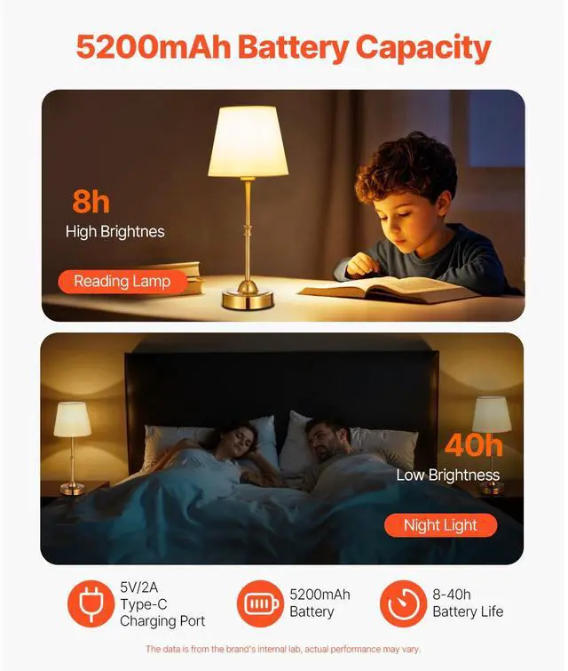 Cordless Table Lamp 2 Pack Rechargeable Battery Desk Lamp Fabric Shade Gold Fabric Shade Electroplated Finish Sturdy Base Large Capacity Battery Versatile Use 2700-3000K