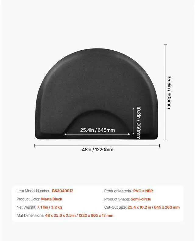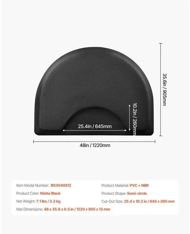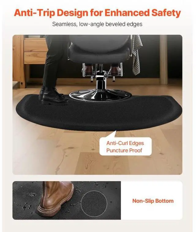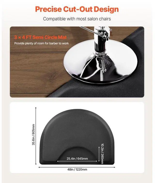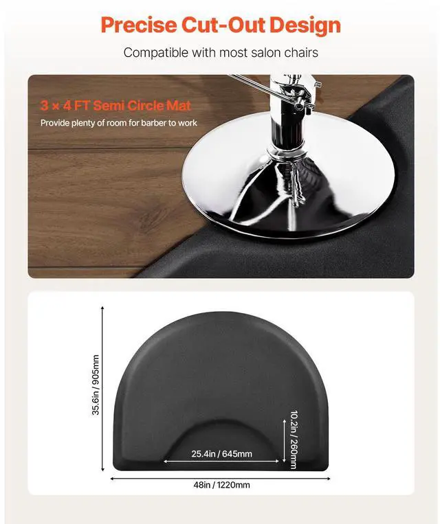 VEVOR Salon Mat for Hair Stylist 3 x 4 FT Semicircle Salon Chair Mat 1/2" Thick Superior Comfort Large Size Easy-to-Clean PVC Surface Ideal Choice for Professional Salons Enhanced Safety Durable for Long-Lasting Use
