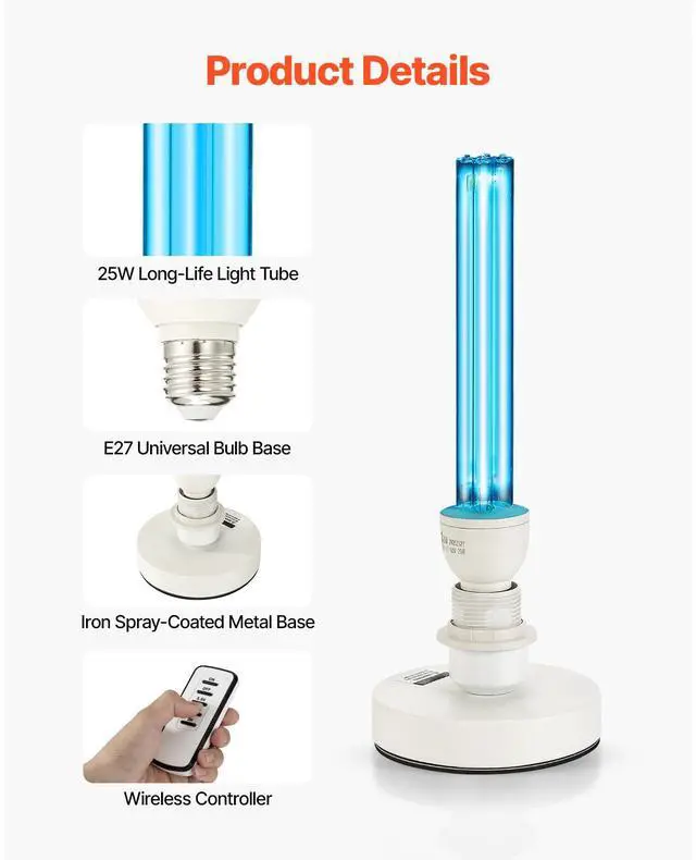 UV Light 25W Ultraviolet Lamp with Ozone Purifier UVC Lamp with Remote Control UV-C & Ozone Combo Premium Quartz Tube with Extended Life Easy Remote Control with 3 Timer Settings 360° Wide Coverage for Deep Cleaning Ideal for Various Settings Compact and
