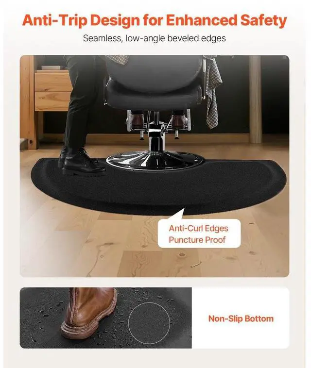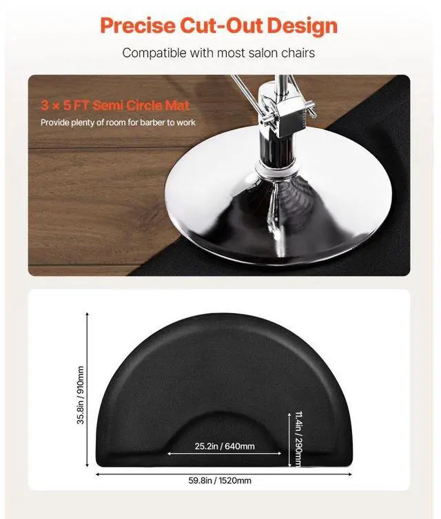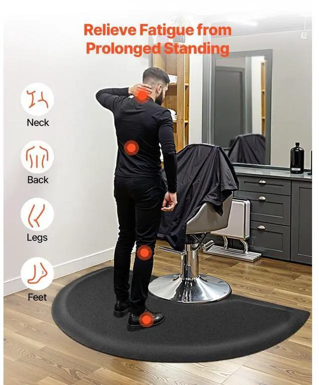 VEVOR Salon Mat for Hair Stylist 3 x 5 FT Semicircle Salon Chair Mat 1/2" Thick Superior Comfort Large Size Easy-to-Clean PVC Surface Ideal Choice for Professional Salons Enhanced Safety Durable for Long-Lasting Use